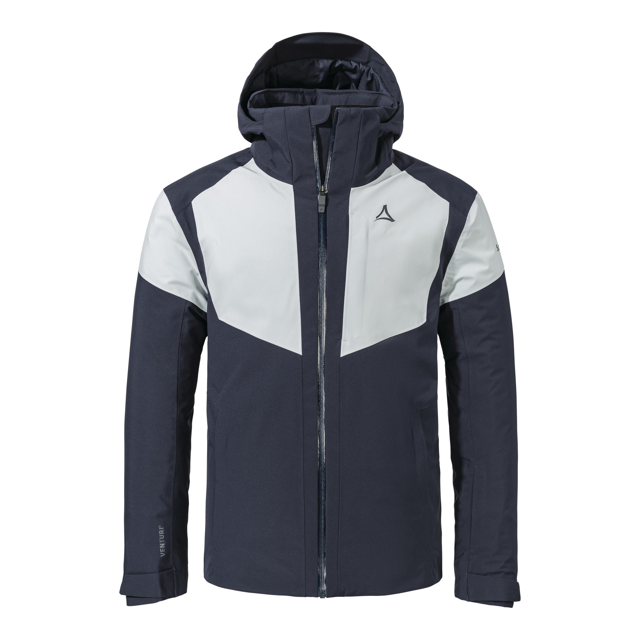 Mit der Schöffel Skijacke bist Du perfekt gerüstet für die Herausforderungen auf der Piste. Die Jacke ist wasserdicht und bietet eine Wassersäule von 10.000 mm. Der feste Schneefang mit Silikonband verhindert das Eindringen von Schnee und die individuell verstellbaren Armabschlüsse sorgen für eine optimale Passform. Die Skitickettasche und die zwei Außentaschen mit Reißverschluss bieten genügend Platz für wichtige Utensilien. Mit dem integrierten Brillenputztuch in der Brusttasche hast Du immer klare Sicht. Dank des 4-Wege-Stretch Materials bietet die Jacke höchste Bewegungsfreiheit.