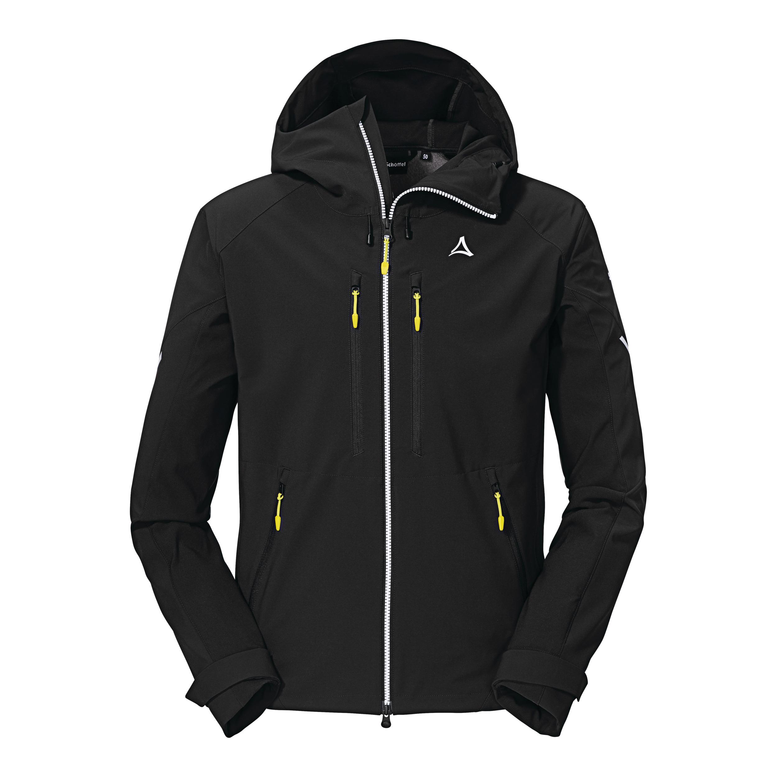Die Belohnung wartet oben auf dem Gipfel. Wer die Natur abseits der Pisten entdecken will, ist mit der funktionalen Softshelljacke von Schöffel gut ausgestattet. Für ein angenehmes Tragegefühl auch auf anspruchsvollen Touren bietet das 4D BODY MAPPING eine maximale Bewegungsfreiheit und ein optimales Körperklima. Mit dem effektiven Feuchtigkeitstransport und der hohen Atmungsaktivität wird das Bergerlebnis genussvoll abgerundet. In der Smart Device Pocket sind Mobiltelefone oder Wertgegenstände trocken und wohlbehütet aufgehoben. Praktisch ist auch der individuell verstellbare Saumabschluss, der die Jacke auch nach unten sicher abschließt.