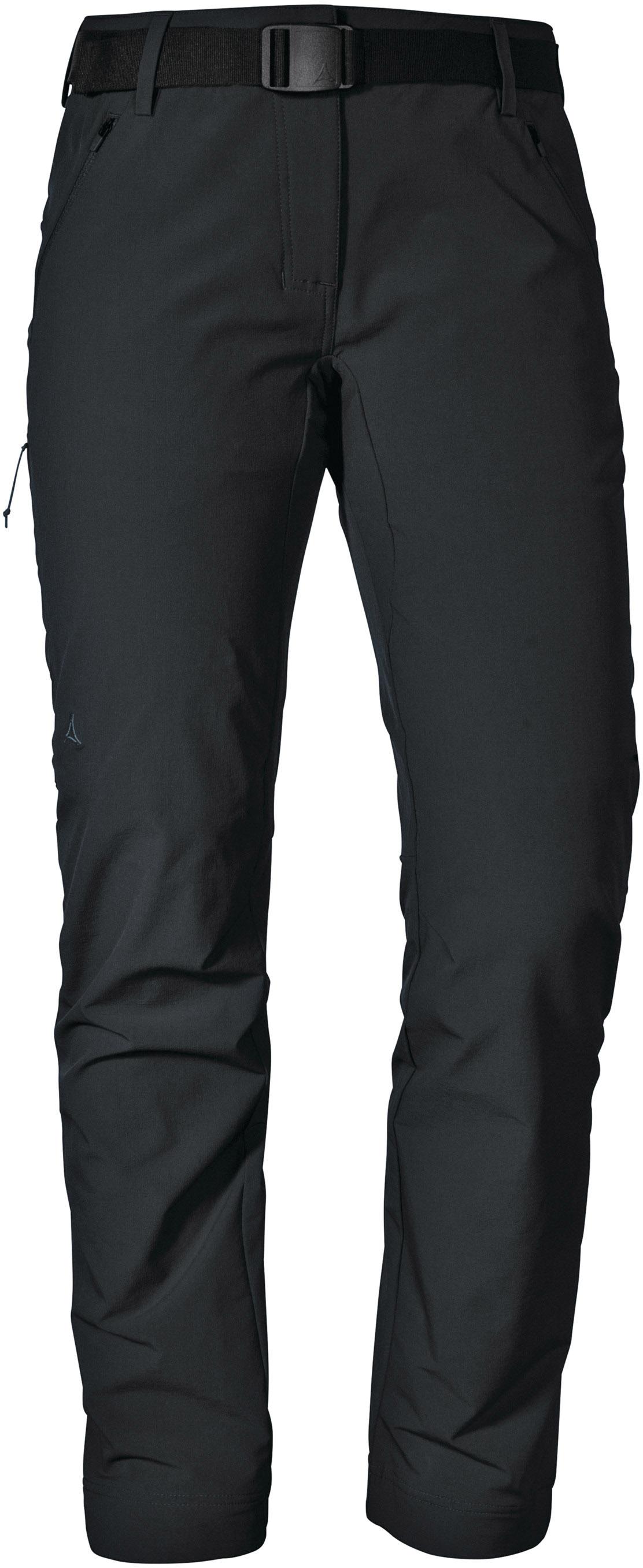 Wanderhose aus 2-Wege-Stretch; wasserabweisend; schnelltrocknend; strapazierfähig; Bund mit Textilgürtel; Haken- und Reißverschluss; 2 Reißverschlusstaschen; 1 Beintasche mit Reißverschluss; vorgeformte Knie; Beinabschlüsse mit Druckknöpfen; ohne PFC hergestellt; zertifiziert nach bluesign® Standard; Fair Wear-Produkt; Material 68% Polyamid, 21% Polyester, 11% Elastan.