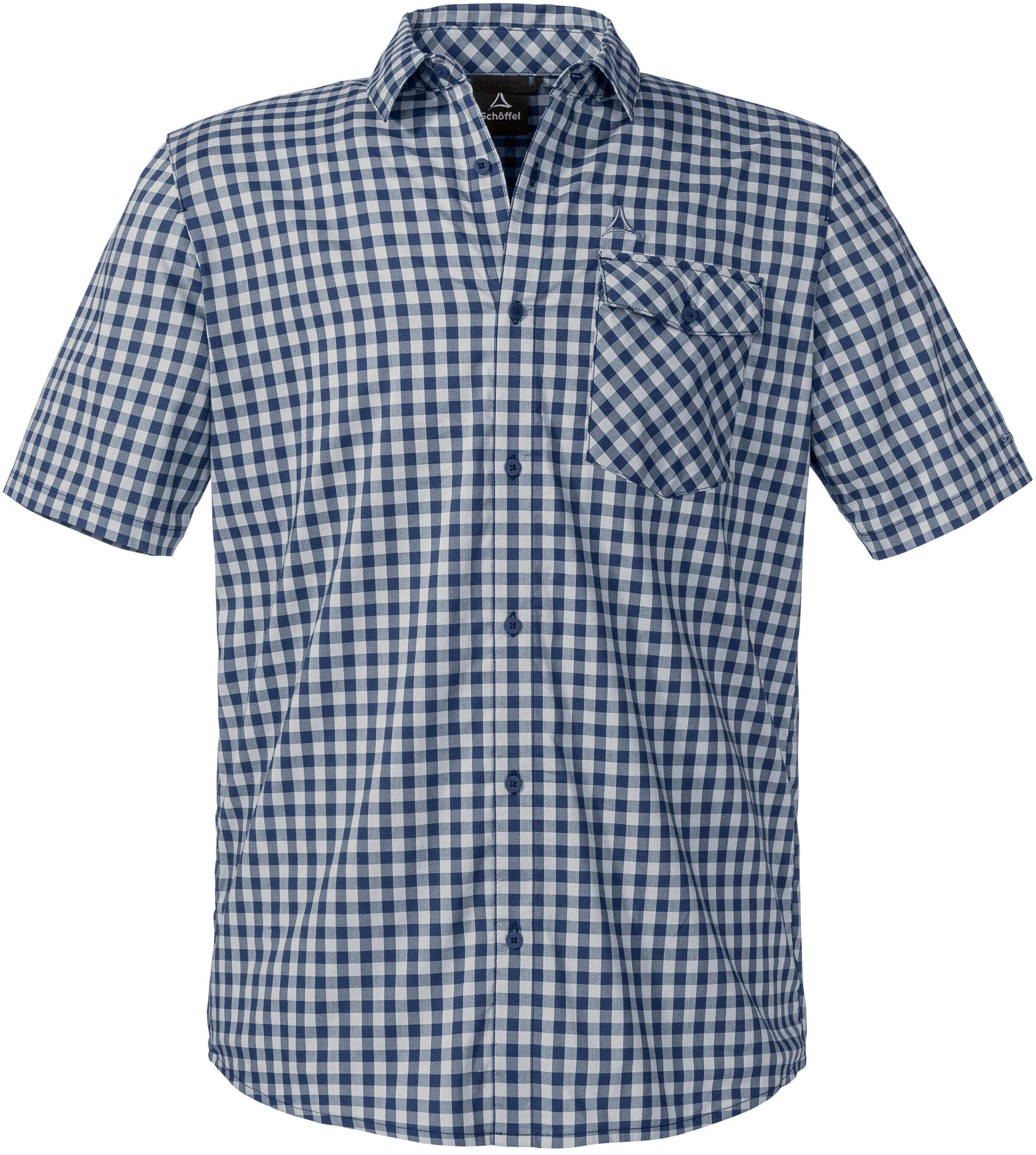 Wanderhemd mit Stretchkomfort für sportliche Bewegungen und angenehmen Tragekomfort; superleicht; atmungsaktiv; schnelltrocknend; Hemdkragen; 1 aufgesetzte Brusttasche mit Patte und Knopf; durchgehende Knopfleiste; abgerundeter Saum; Gewicht: ca. 142 g/Gr. M; Material 71% Baumwolle, 25% Polyamid, 4% Elastan.