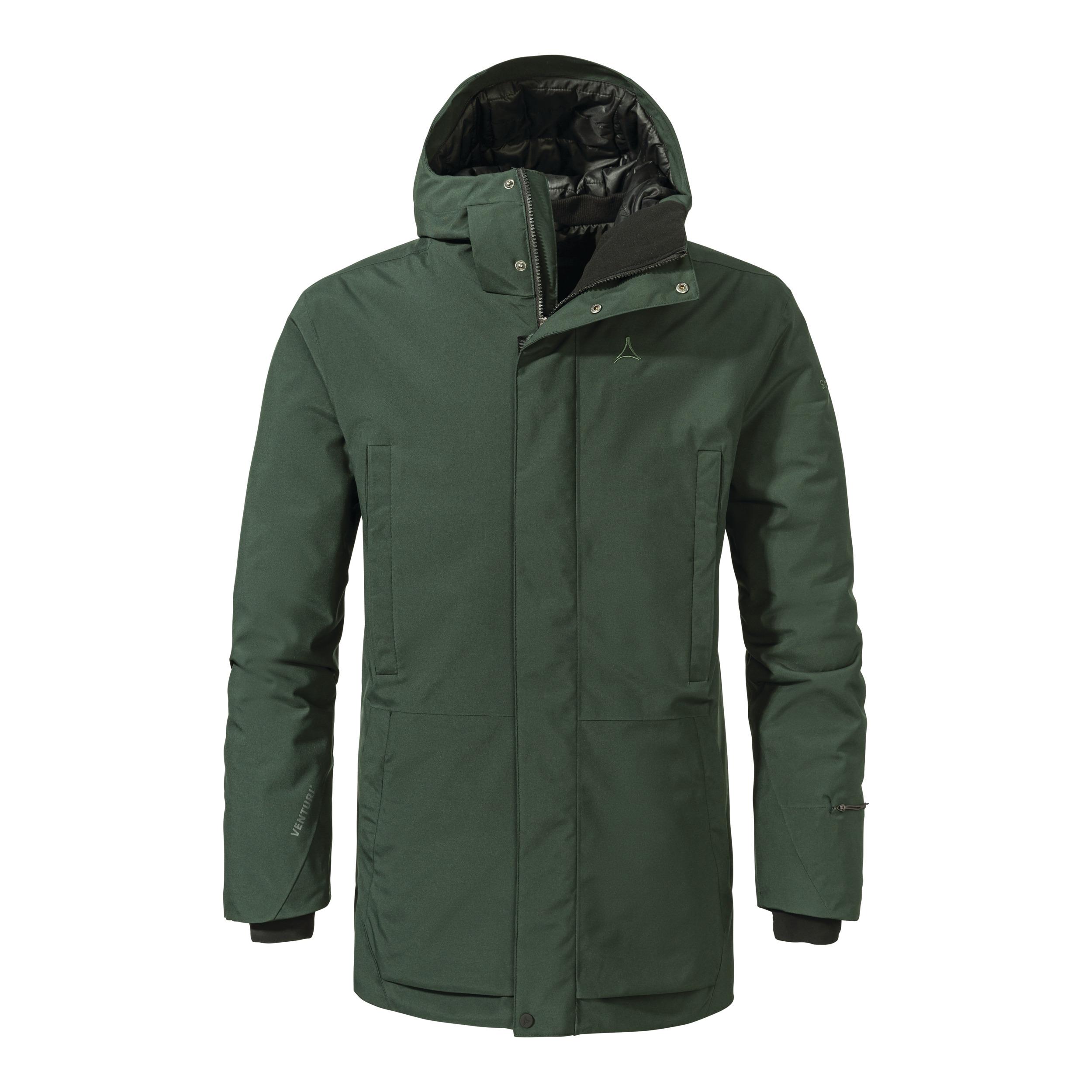 Der Outleisure® Parka kombiniert stilvolles Design mit herausragender Funktionalität. Die elastische 2-Lagen VENTURI® Bekleidung garantiert Wasserdichtigkeit und Atmungsaktivität, ideal für jegliche Outdoor-Aktivitäten. Mit einer Wassersäule von 10.000 mm und der PrimaLoft® Black Insulation Eco bietet der Parka Wärme und Komfort bei leichtem Gewicht. Der Parka zeichnet sich durch seine legere Passform und den 2-Wege-Stretch aus, der eine ausgezeichnete Bewegungsfreiheit ermöglicht. Hergestellt aus recyceltem Material, ist dieser Parka eine umweltfreundliche Wahl. Der hochschließende Kapuzenkragen mit Kinnschutz am Reißverschluss schützt zusätzlich, während die Armtasche mit Reißverschluss und herausklappbarem reflektivem Element praktisch und sicher für kleine Gegenstände ist. Unser Model ist 188 cm groß und trägt Gr. 50.