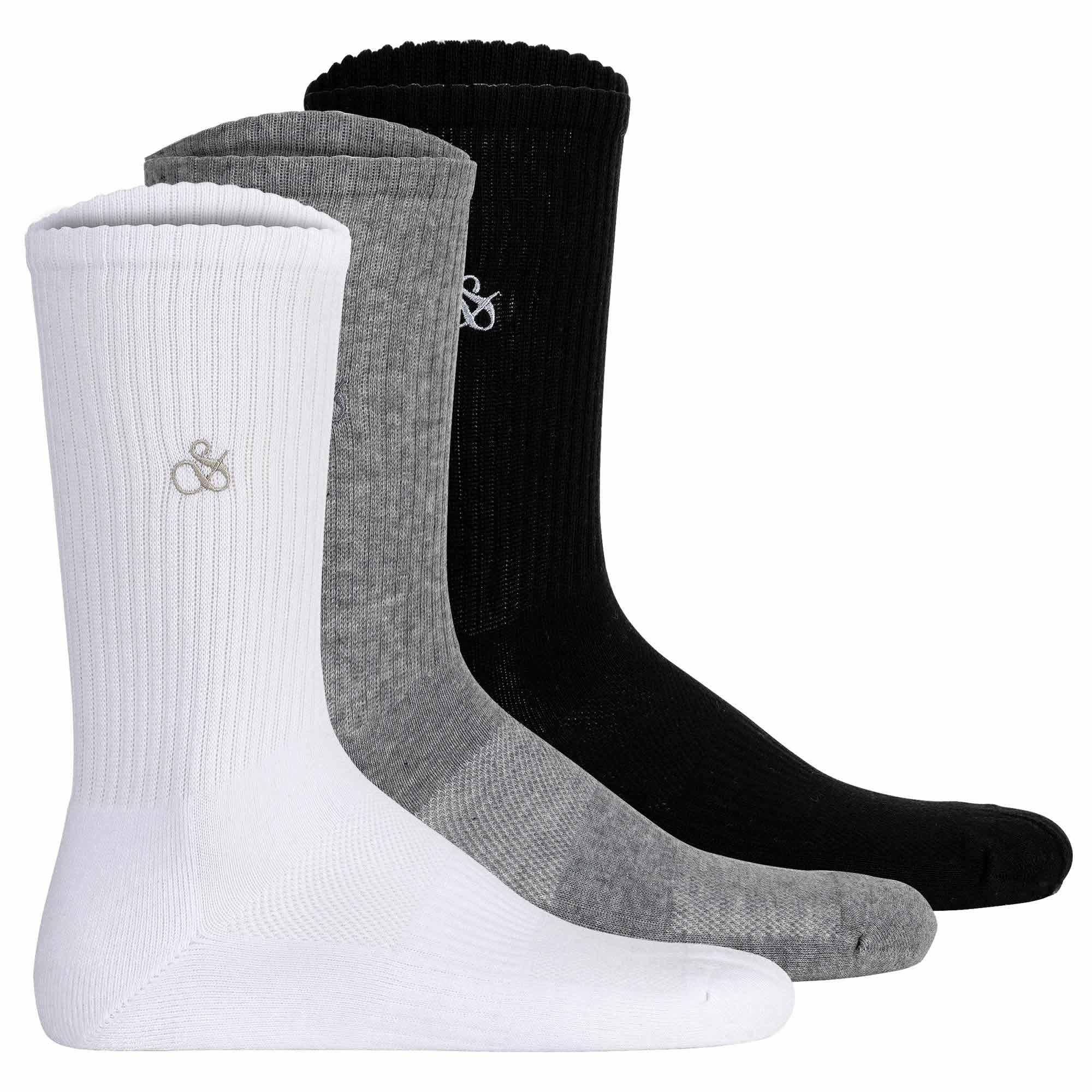 Basic Herren Socken von der Marke Scotch&Soda. 1/2 Terry Cotton Socken mit kleinem Logo im praktischen 3er Pack. One Size.