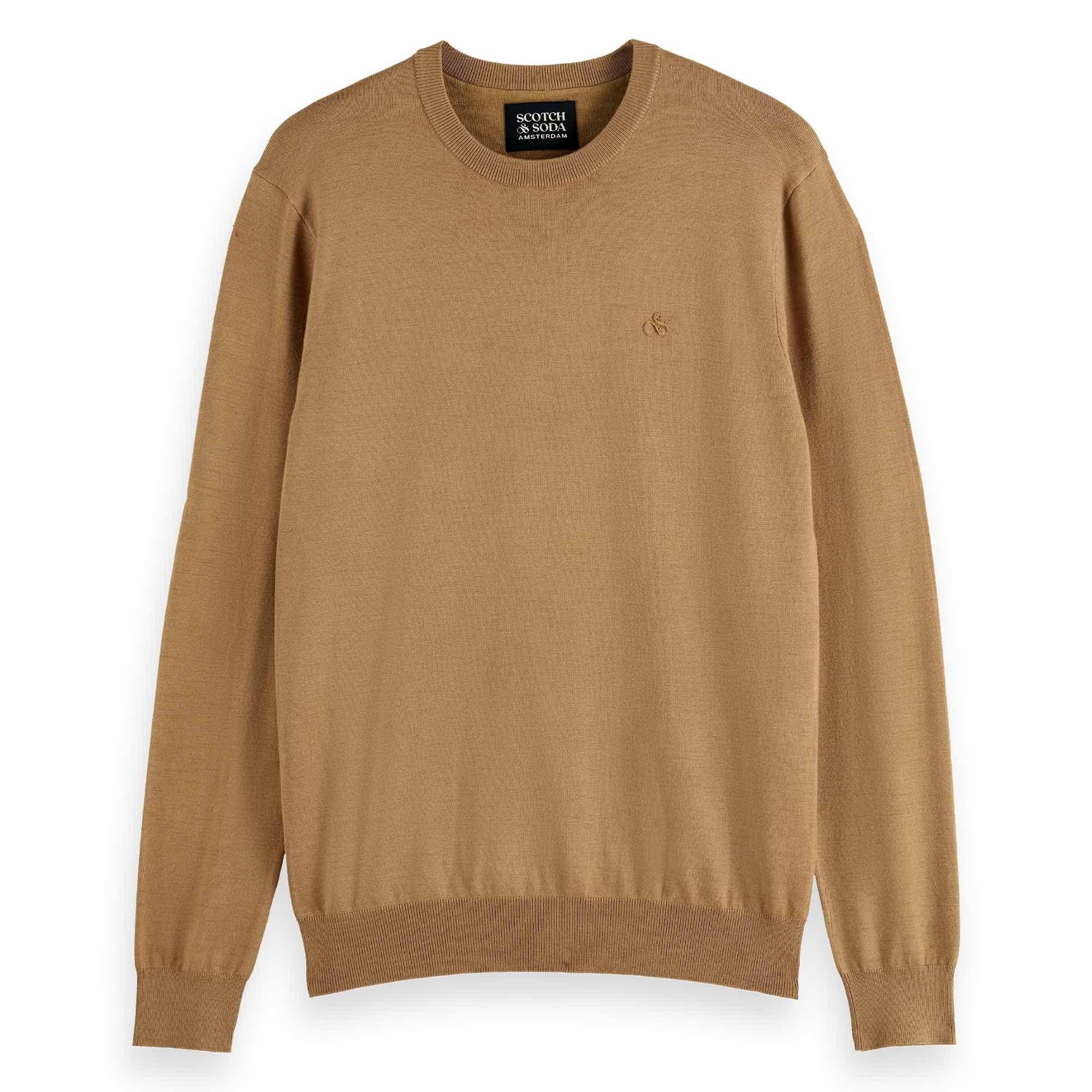Herren Strickpullover mit Rundhalsausschnitt von der Marke SCOTCH&SODA. Einfarbiger Pullover aus Viskose mit kleinem Logo auf der Brust.