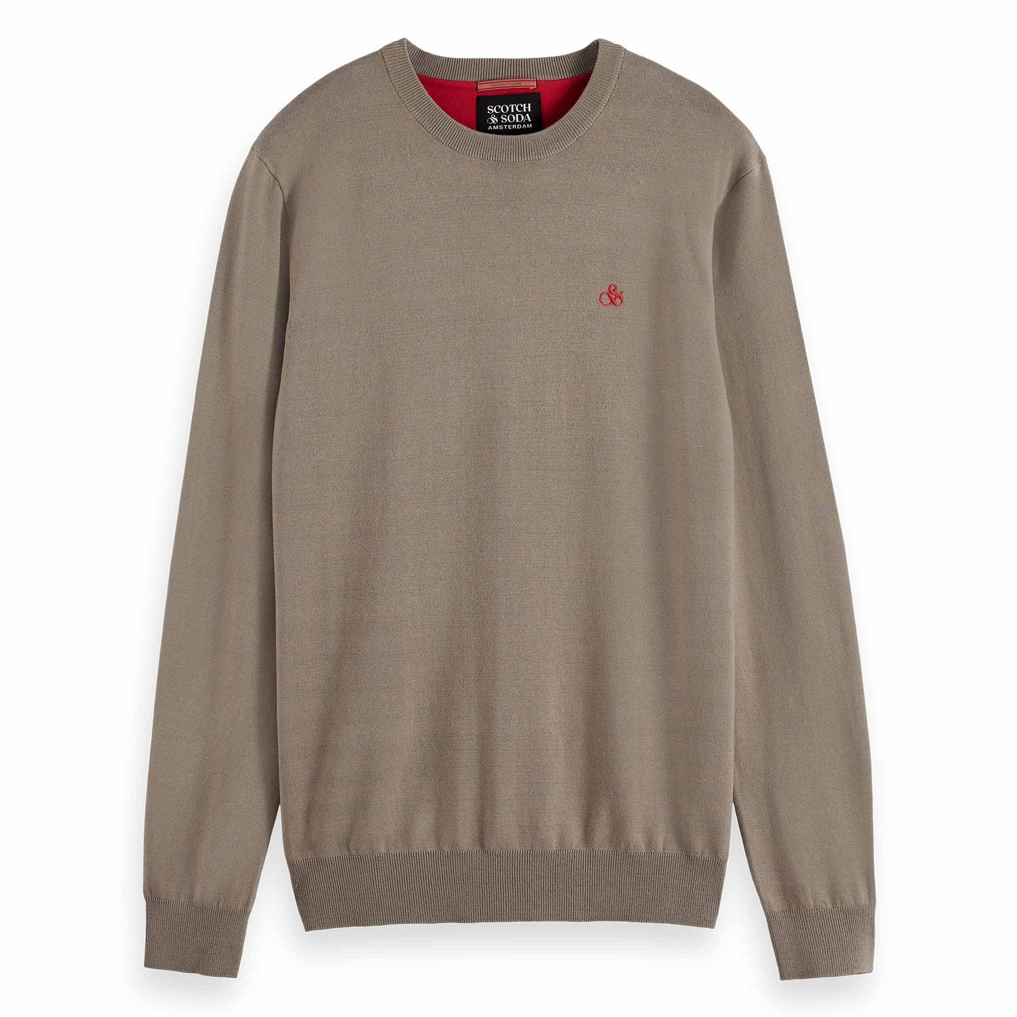 Einfarbiger Herren Pullover mit Rundhalsausschnitt von der Marke SCOTCH&SODA. Sweater aus Viskose mit kleinem Logo auf der Brust.