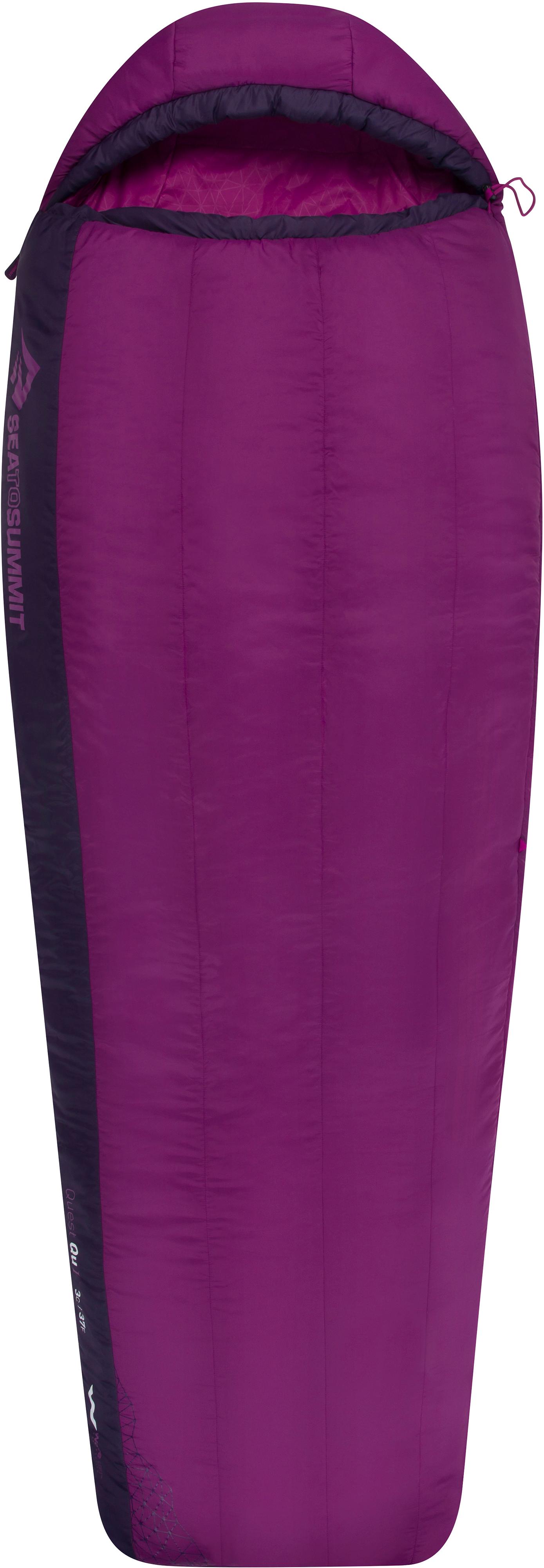 Sea to Summit QUEST QUI WOMEN LONG. Frauenspezifisch geformter Kunstfaserschlafsack mit ganzseitigem Reißverschluss, so kann der Schlafsack auch als Decke benutzt werden; wärmeisolierende Wattierung; zur optimalen Ventilation ist an der Zehnbox ein zusätzlicher Reißverschluss angebracht; ideal für Temperaturen von +3° bis -19° C; Länge: ca. 183 cm; Breite von 150 bis 102 cm.