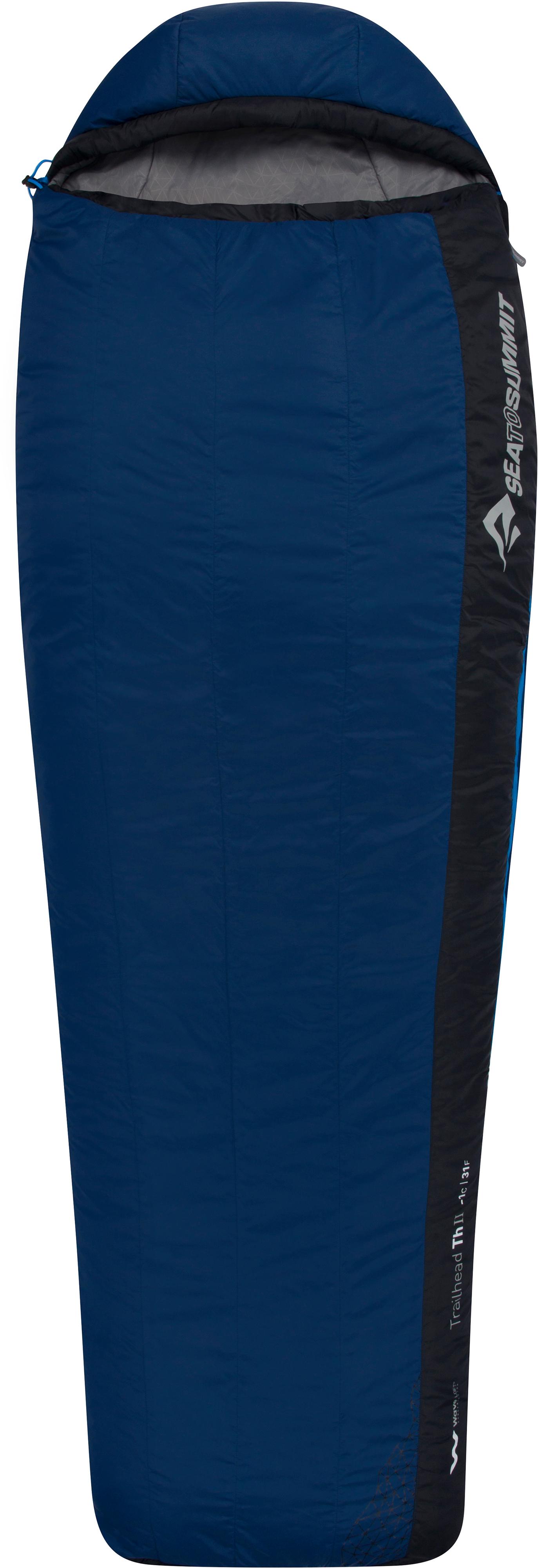 Sea to Summit TRAILHEAD THII REGULAR. Kunstfaserschlafsack mit seitlichen, durchgehenden Reißverschluss, so kann der Schlafsack auch als Decke benutzt werden; wärmeisolierende Wattierung; zur optimalen Ventilation ist an der Zehnbox ein zusätzlicher Reißverschluss angebracht; ideal für Temperaturen von +5° bis -16° C; Länge: ca. 183 cm; Breite von 152 bis 102 cm.
