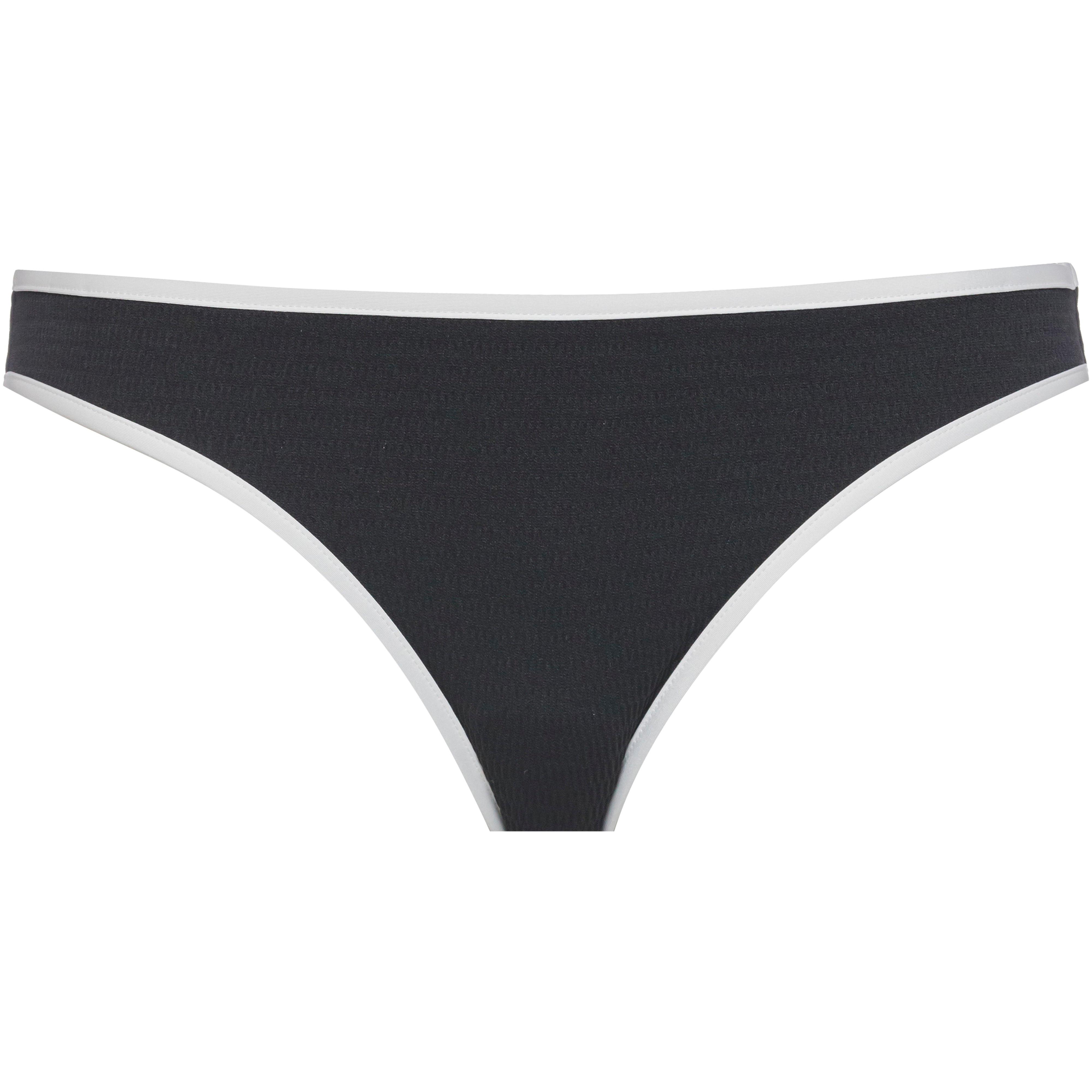 Tief geschnittene Bikini Hose mit strukturiertem Gewebe hergstellt; Slip Passform; mindestens 80% Recyclingmaterial; Material I 75% Polyamid (recycelt), 25% Elastan, Material II 83% Polyester, 17% Elastan.