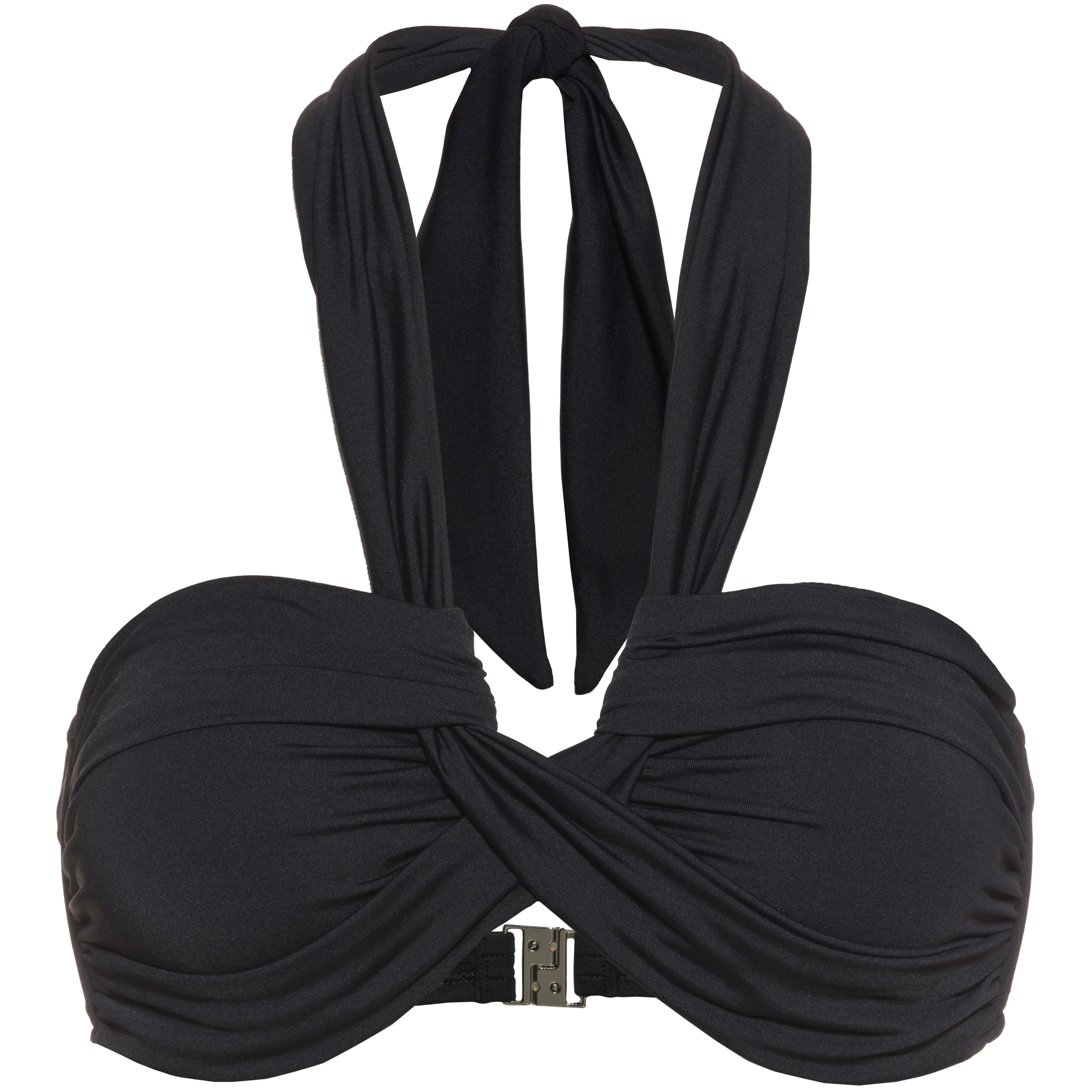 Im Nacken zu schnürendes Bikini-Oberteil aus Recyclingmaterial, mit modischer Front in Wickeloptik; gepolsterte Cups; Material I 87% Polyamid (recycelt), 13% Elastan, Material II 88% Polyamid (recycelt), 12% Elastan.