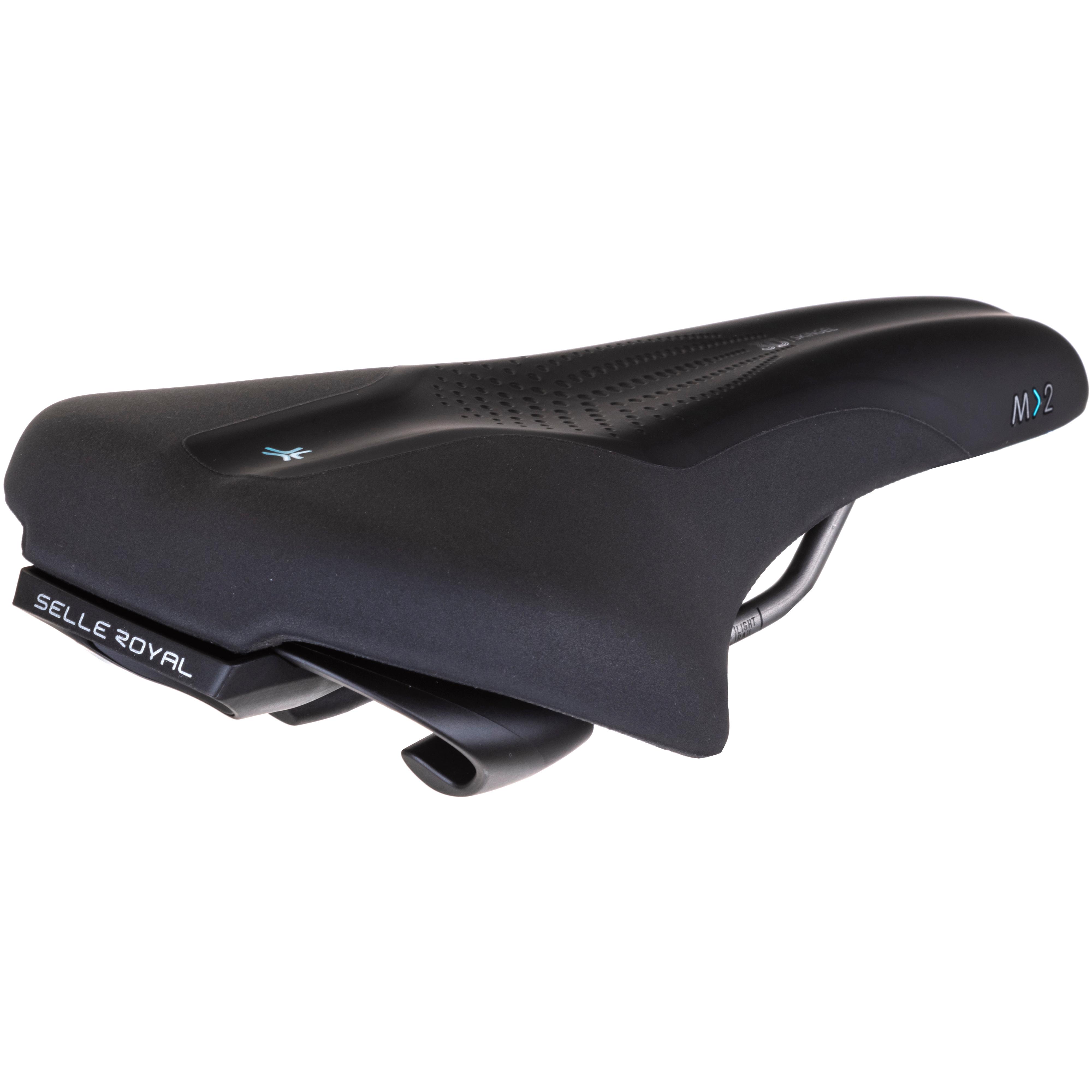 Fahrradsattel für Fahrer, die sich in der Moderate-Fahrposition am wohlsten fühlen und bei denen der Sitzknochenabstand größer als 13 cm ist; Curva Suspension-Technologie bei der sich die einteilig gebogenen Sattelstrebe den Bereich der Sitzknochen dämpft; die ausgereifte 3D-Skingel-Technologie und ein mittiger Entlastungskanal vermindern den Druck auf den Sitzbereich; Maße (B/L): ca. 178 x 289 mm; Gewicht: ca. 465 g.