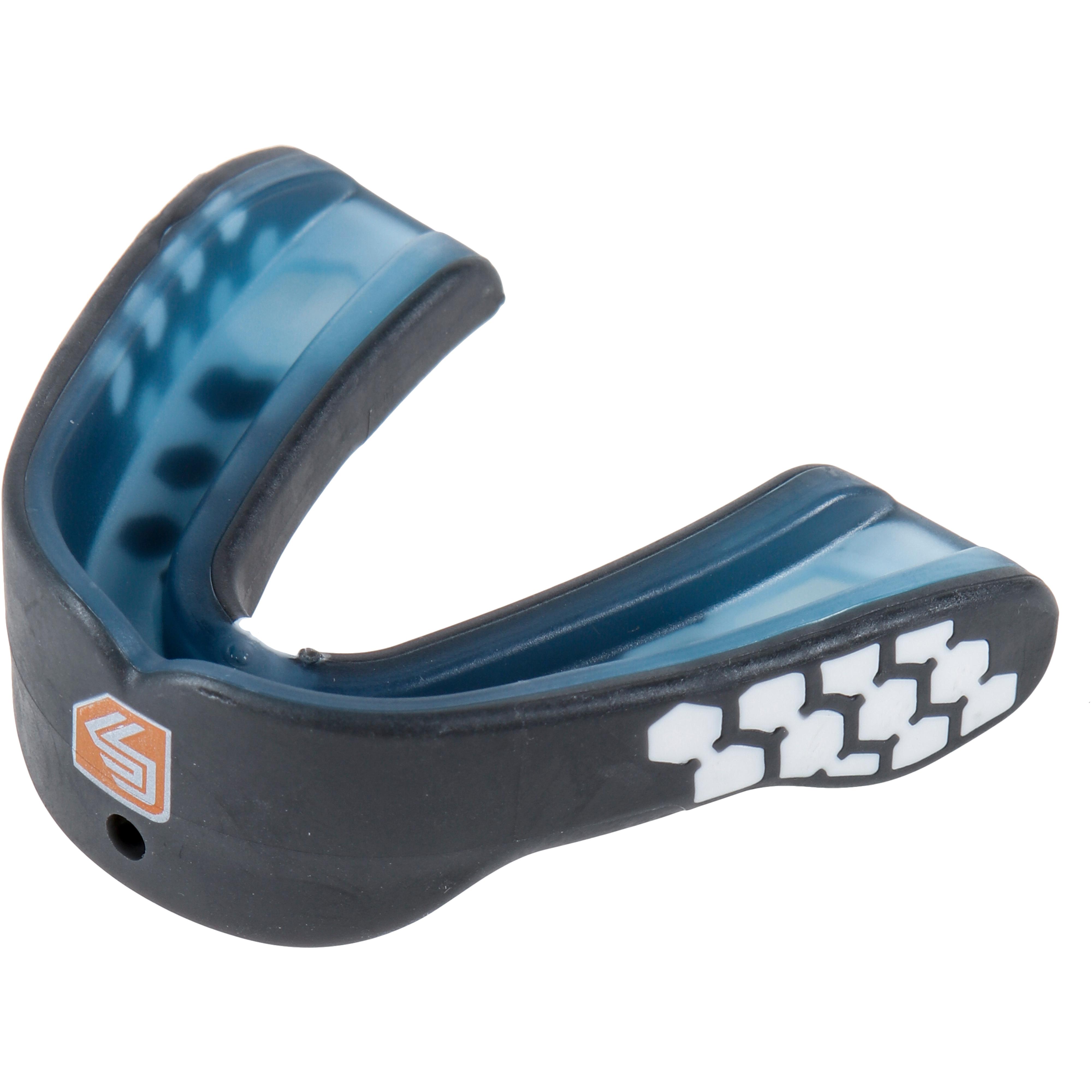 Mundschutz mit individuell anpassbarer Form für einen perfekten Sitz; Exoskeletal Shock Frame™ schützt vor Stößen; der Gel-Fit™ Liner sorgt für guten und komfortablen Halt; mehrlagiges Design; integrierte Atmungskanäle; Material 80% Ethylenvinylacetat, 20% Kunststoff.