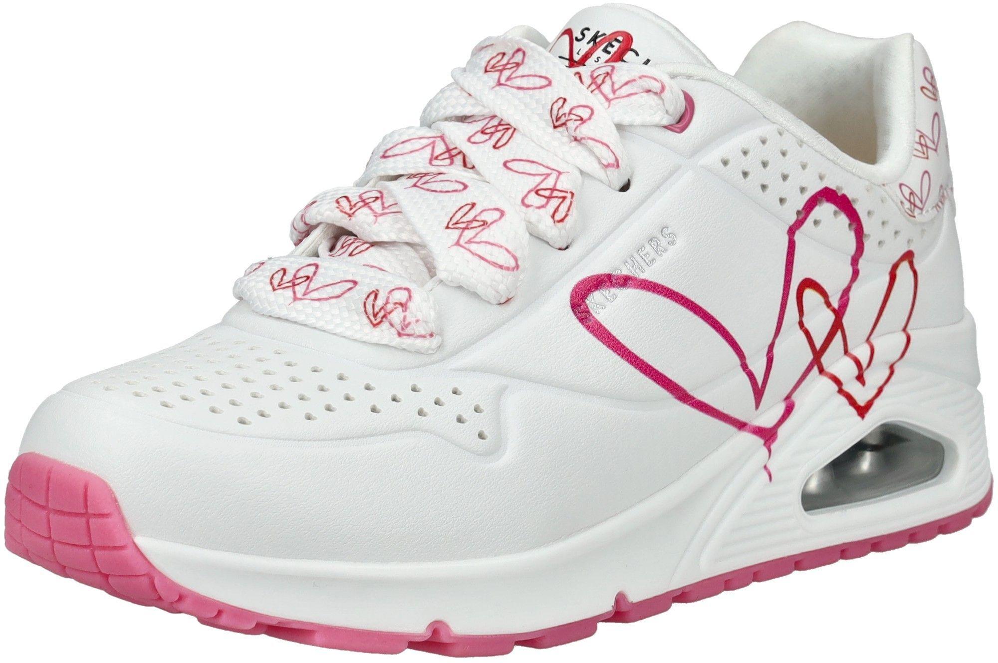 Verspielter Sneaker von Skechers mit liebevollen Herz-Details und elastischen Schnürsenkeln. Die gepolsterte Air-Sohle sorgt zusammen mit der herausnehmbaren Innensohle für individuellen Tragekomfort – ideal für stylische Freizeit-Looks mit dem gewissen Extra.