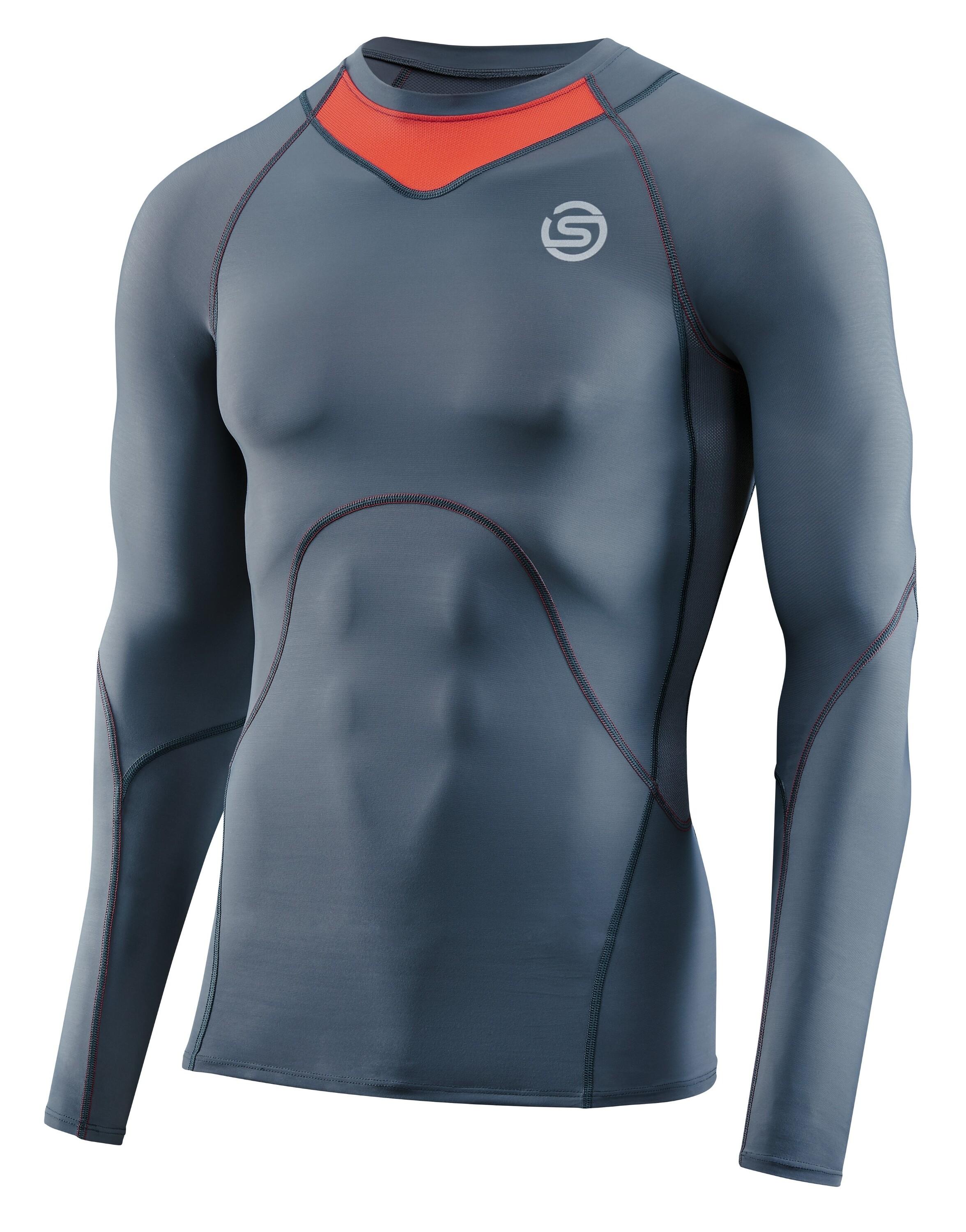Das Mens 3-Series Long Sleeve von SKINS für Herren ist ideal für Aktivitäten mit mittlerer bis hoher Intensität. SKINS hat sich hier auf die Unterstützung von Unterarm, Bizeps und Schultern konzentriert. Indem es den Druck erhöht und diese Bereiche umhüllt, bietet das Langarmshirt eine starke Grundlage für eine dynamische Körperleistung. Das Oberteil unterstützt die Muskeldurchblutung während der Aktivität und reduziert die negativen Auswirkungen von Milchsäure, denn mehr Sauerstoff bedeutet mehr Leistung. Die Kompression dämpft und reduziert außerdem Muskelvibrationen, was den Energieverlust verringert. Durch die Kompression bleibt der Körper leistungsfähiger. Die Netzbelüftung entlang der Wirbelsäule und in der unteren Hälfte des Rückens ermöglicht eine optimale Belüftung und Temperaturregulierung.