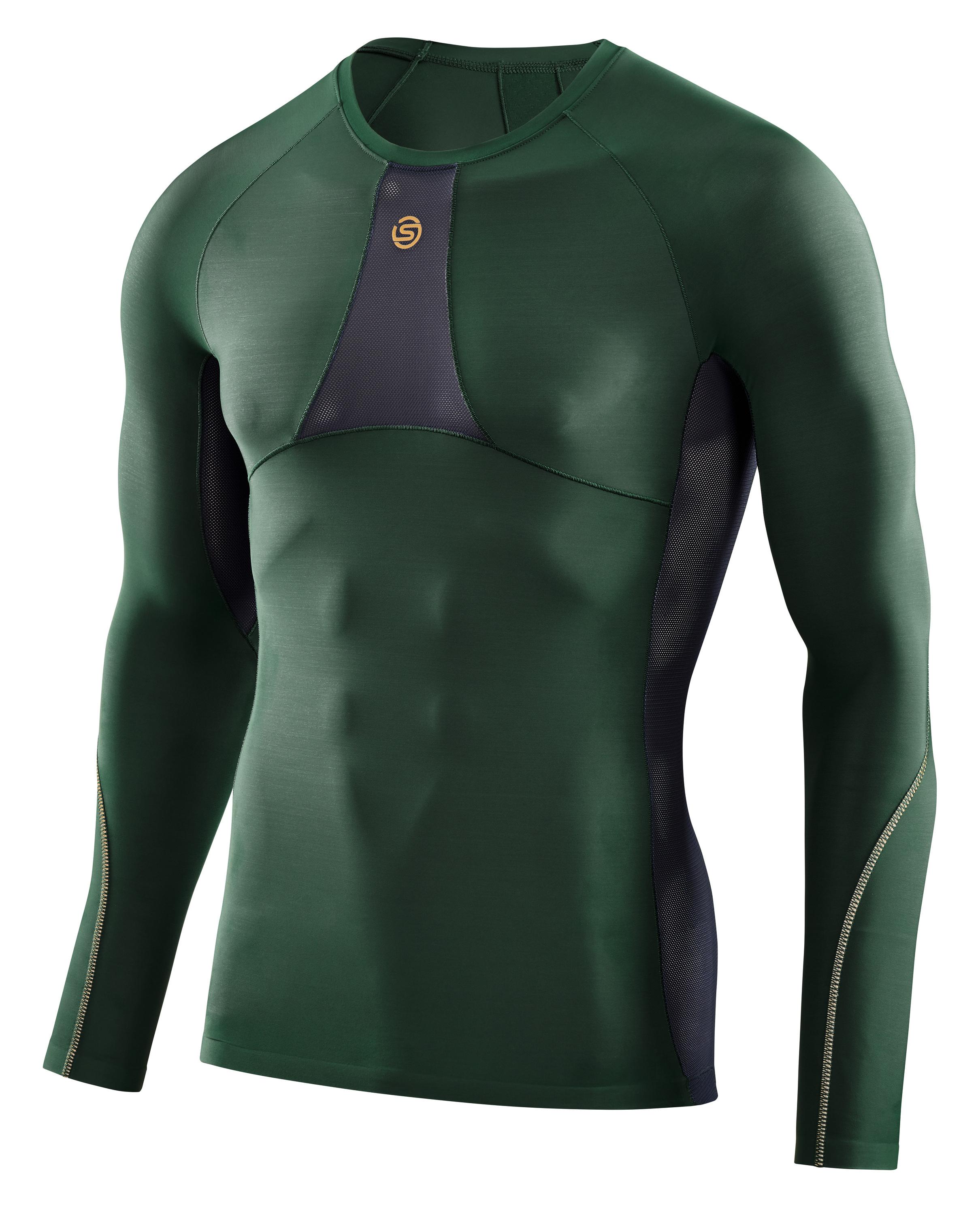 Das Series, Mens Top L/S für Herren von SKINS wurde für explosive, dynamische Aktivitäten wie Crossfit, Hindernisrennen, Schlägersportarten und körperbetonte Teamsportarten entwickelt, die aufgrund von kräftigen Bewegungen mit den Armen und Schultern, Prellungen und Muskelschäden sowie Entzündungen verursachen können. SKINS hat sich dabei auf die Unterstützung von Unterarm, Bizeps und Schultern beim Rundhalsausschnitt Shirt konzentriert. Durch die Erhöhung des Drucks und die Umhüllung dieser Bereiche bietet das Langarm-Shirt eine starke Grundlage für eine dynamische Leistungsfähigkeit des Körpers. Das Oberteil unterstützt die Muskeldurchblutung während der Aktivität und reduziert die negativen Auswirkungen von Milchsäure, denn mehr Sauerstoff bedeutet mehr Leistung. Die Kompression dämpft und reduziert auch Muskelvibrationen, was den Energieverlust reduziert. Die Kompression hält den Körper also leistungsfähiger. Eine Mesh-Belüftung entlang der Wirbelsäule und in der unteren Hälfte des Rückens ermöglicht eine optimale Belüftung und Temperaturregulierung.
