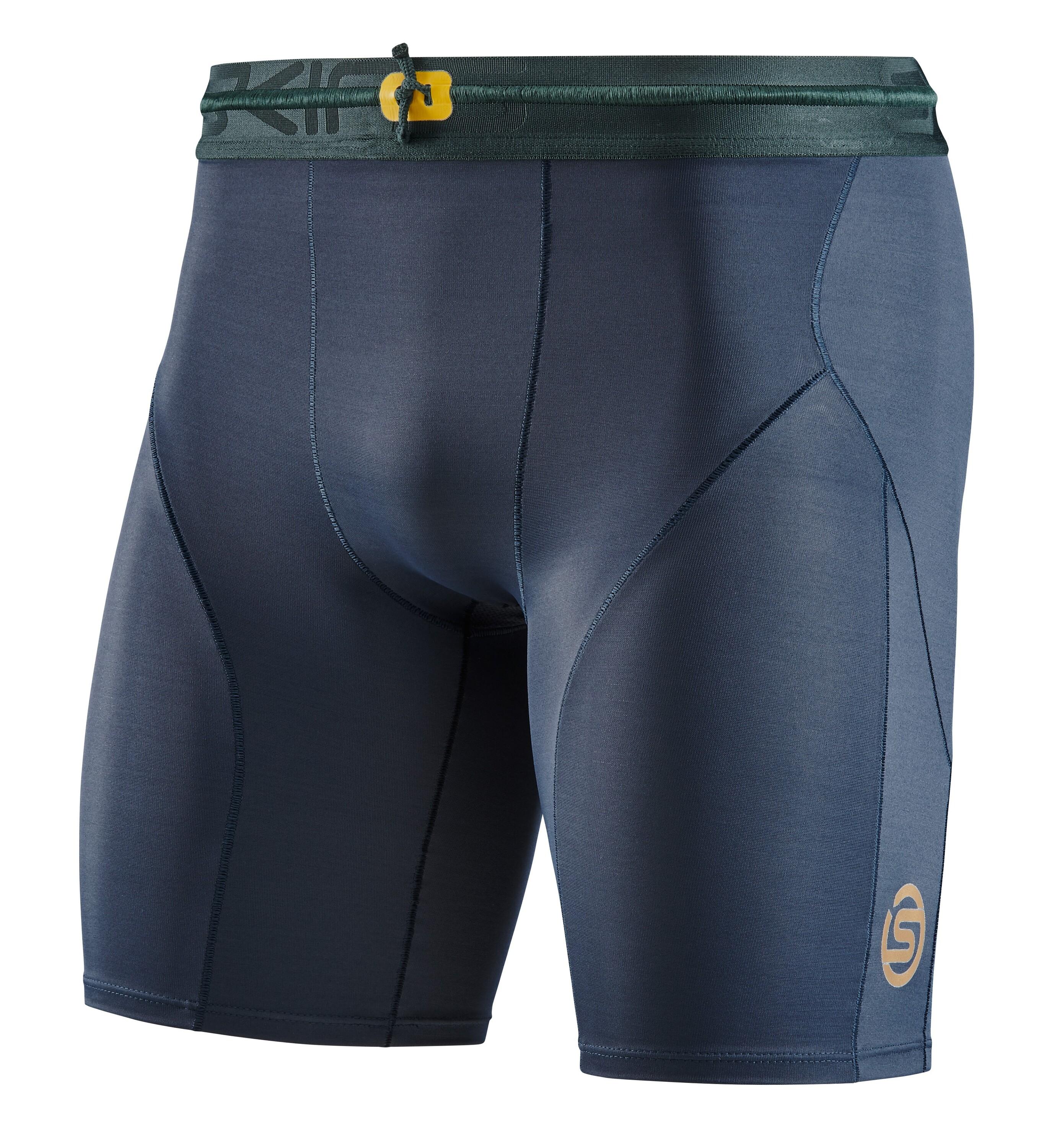 Die Series, Mens Powershorts von SKINS für Herren sind ideal für intensive Sportarten, die dynamische Bewegungen und explosive Geschwindigkeitsstöße erfordern, wie Sprinten, Powerlifting und Teamsport. Sie haben einen elastischen Bund mit einem Kordelzug zur Anpassung. Außerdem umhüllen sie den oberen Quad, die Kniesehne und die Gesäßmuskulatur, um ein hohes Maß an Kompression für die leistungserzeugenden Muskelgruppen zu bieten. Die antimikrobiellen Shorts sind reflektierend, um die Sichtbarkeit bei schlechten Lichtverhältnissen zu erhöhen.