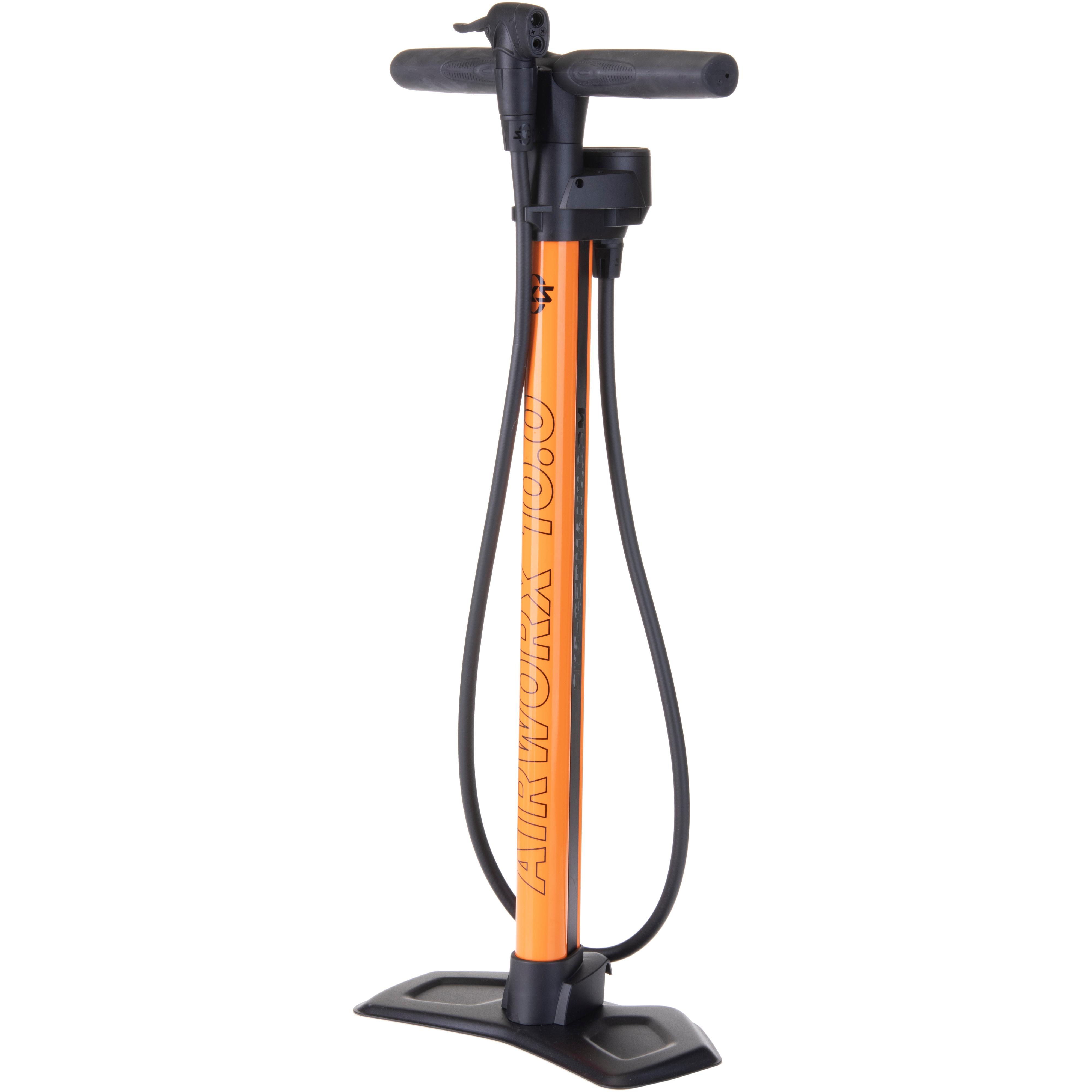 Standluftpumpe mit Multi Valve-Ventilanschluss, geeignet für alle Ventilarten; extra langer Hochdruckschlauch; Präzisionsmanometer bar / PSI, mit Einstellring; Druck: 10 bar / 144 PSI; Höhe: ca. 665 mm.