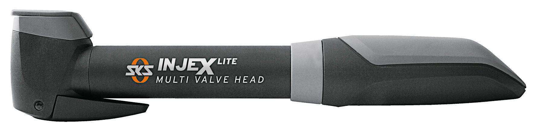 SKS GERMANY INJEX LITE. Leichte Minipumpe, Pumpkopf mit Staubschutzkappe, passend für Sclaverand, Dunlop und Autoventile; Pumpleistung bis 5 bar, Material Kunststoff, Länge 252 mm; Gewicht 150 g.