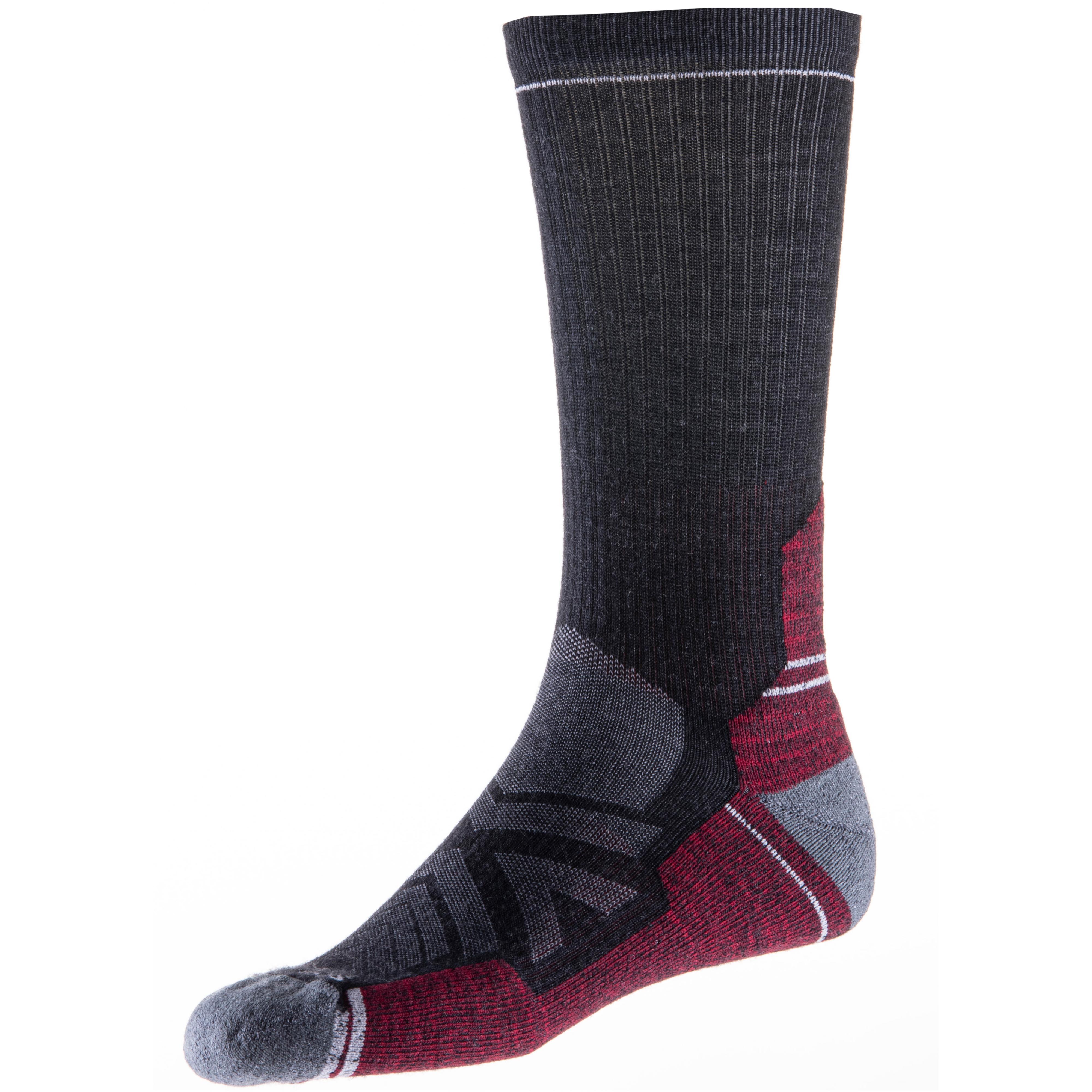 Wärmende Wandersocken mit hohem Wollanteil; Material mit Recyclinganteil; flache Zehennaht für reibungsarmen Tragekomfort; feuchtigkeitsregulierende und atmungsaktive Funktion; Material 58% Wolle (Merinowolle), 40% Polyamid, 2% Elastan.