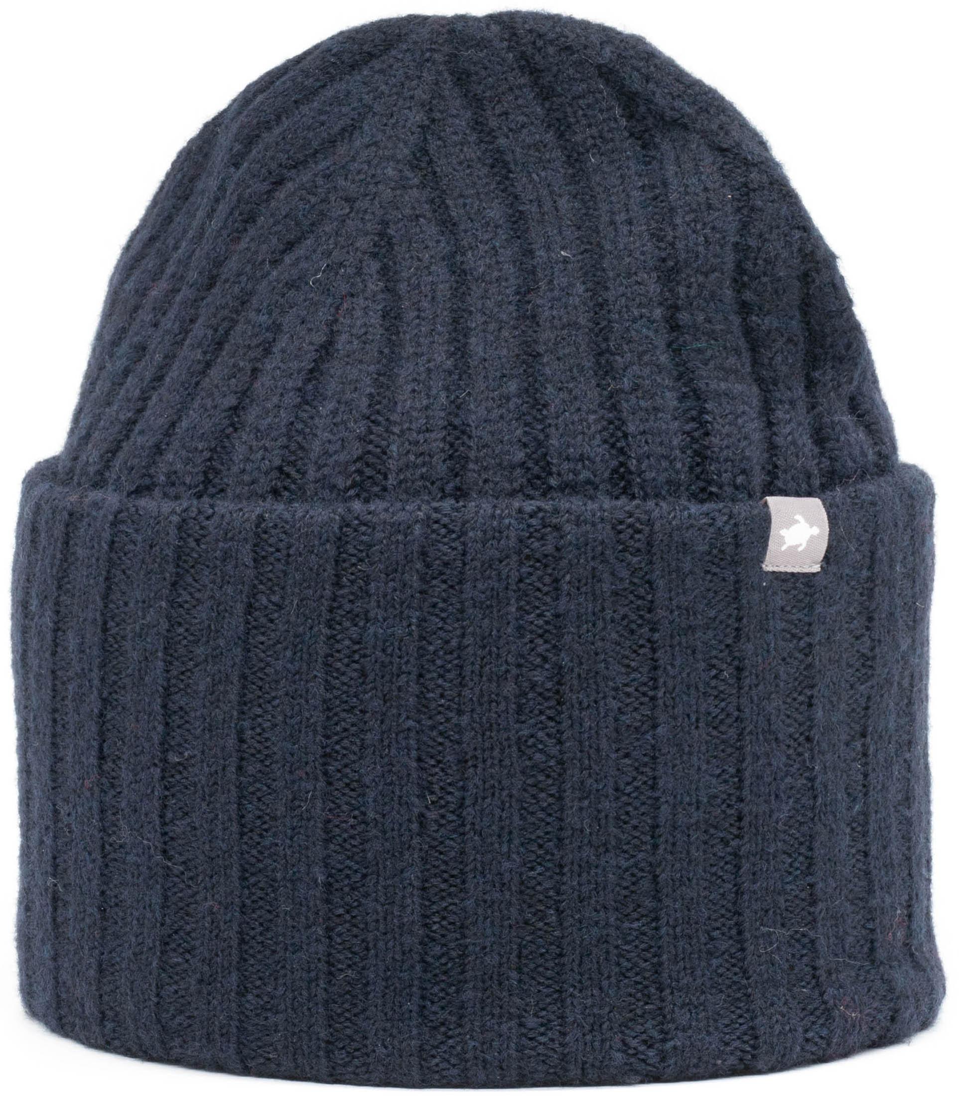Warme Strickmütze mit extra breitem Umschlag; gewebtes Label; mit Recyclingmaterial hergestellt; Material 74% Polyester (recycelt), 22% Acryl, 4% Elastan.