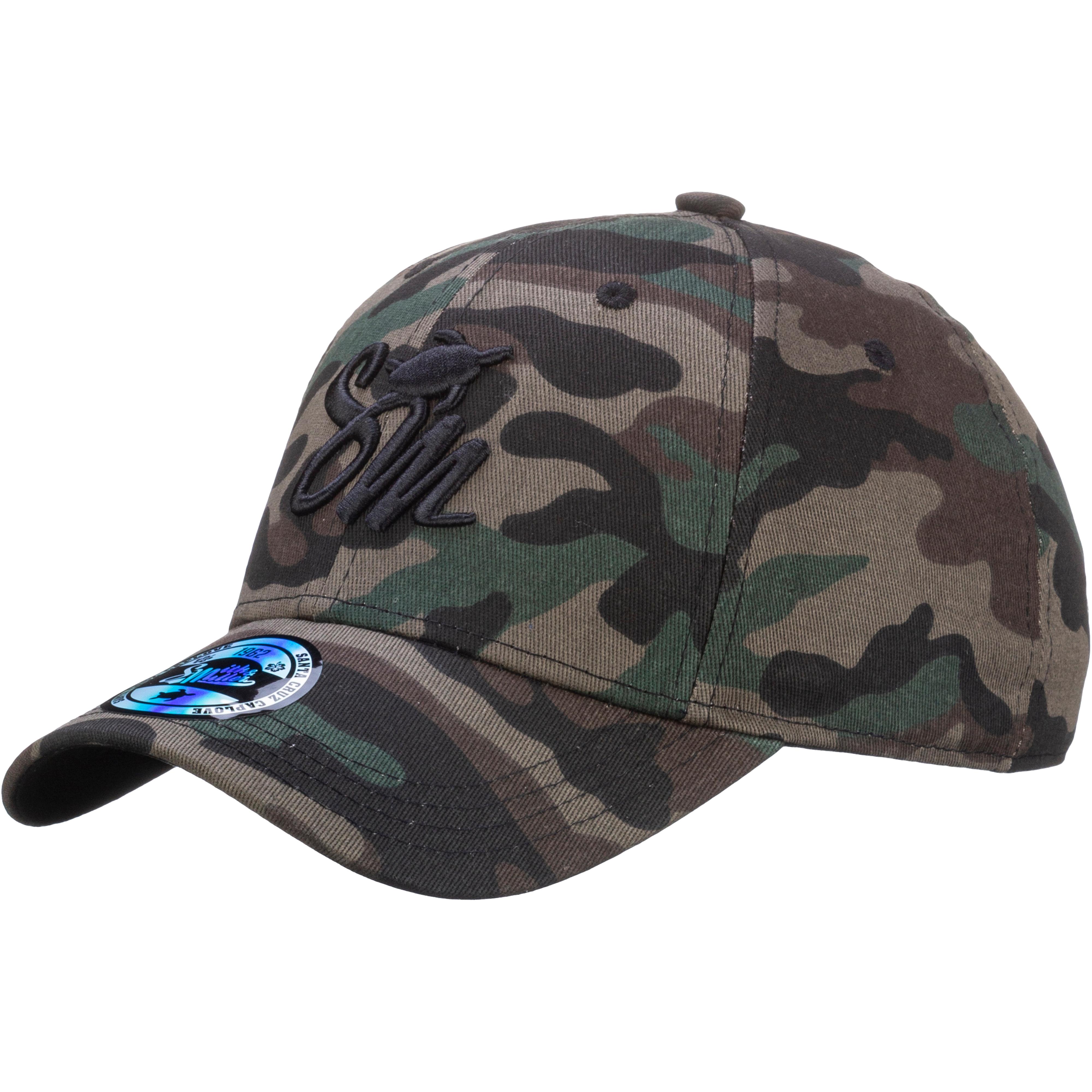 Baumwoll-Cap mit Camouflage-Muster; gesticktes Logo auf der Vorderseite; 6-Pabel-Design; Belüftungslöcher; gebogener Schild; stufenweise durch Kunststoffriegel am Hinterkopf verstellbar; weiches Hutband; Material 100% Baumwolle.