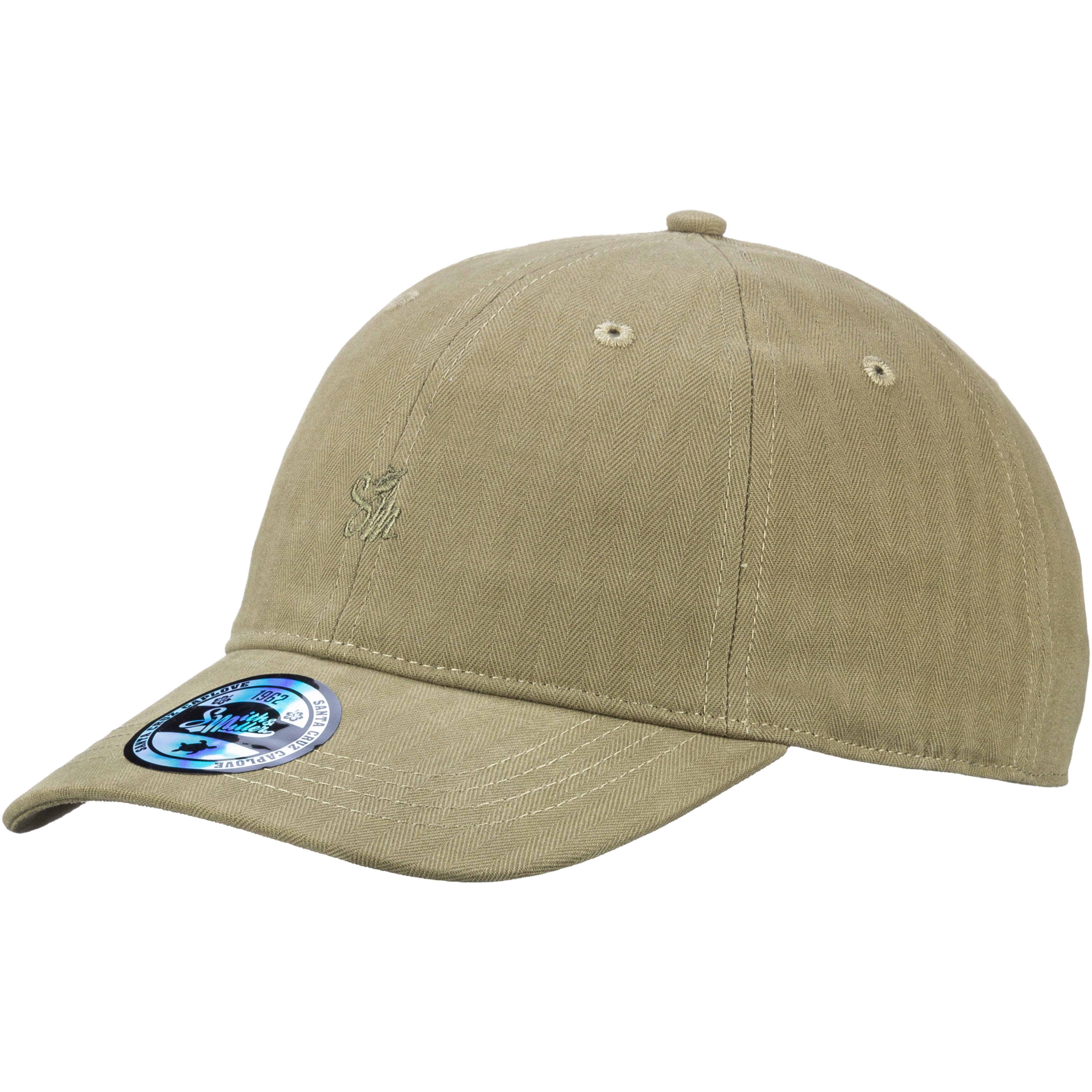 Cap aus weichem Textil mit kleinem Logo-Stitching auf der Vorderseite; 6-Panel-Design; Belüftungslöcher; gebogener Schild; stufenlos durch Metallschnalle am Hinterkopf verstellbar; weiches Hutband; Material 100% Baumwolle.