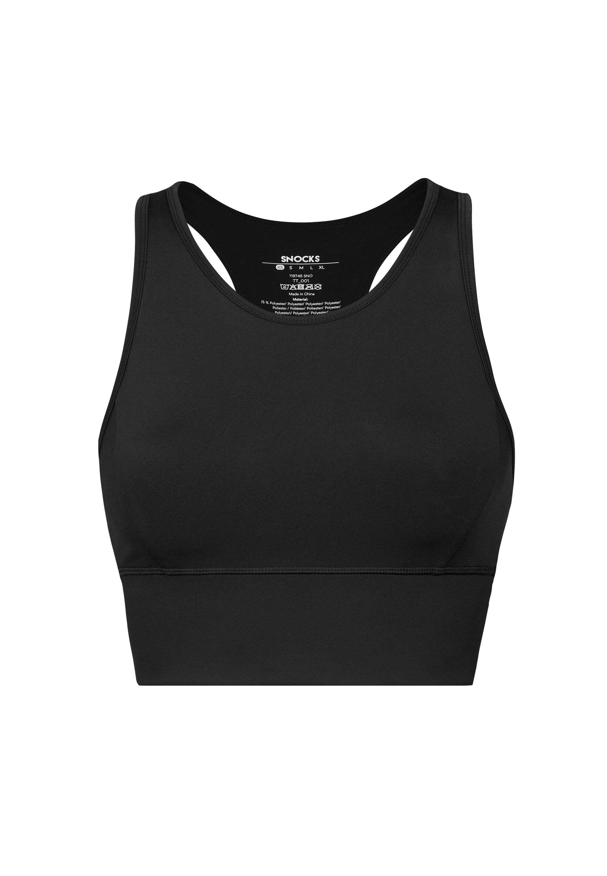 - Die weichen Elasthanfasern machen das Top gleichzeitig flexibel und formbeständig, damit es auch bei intensivem Training seine körpernahe Passform behält.