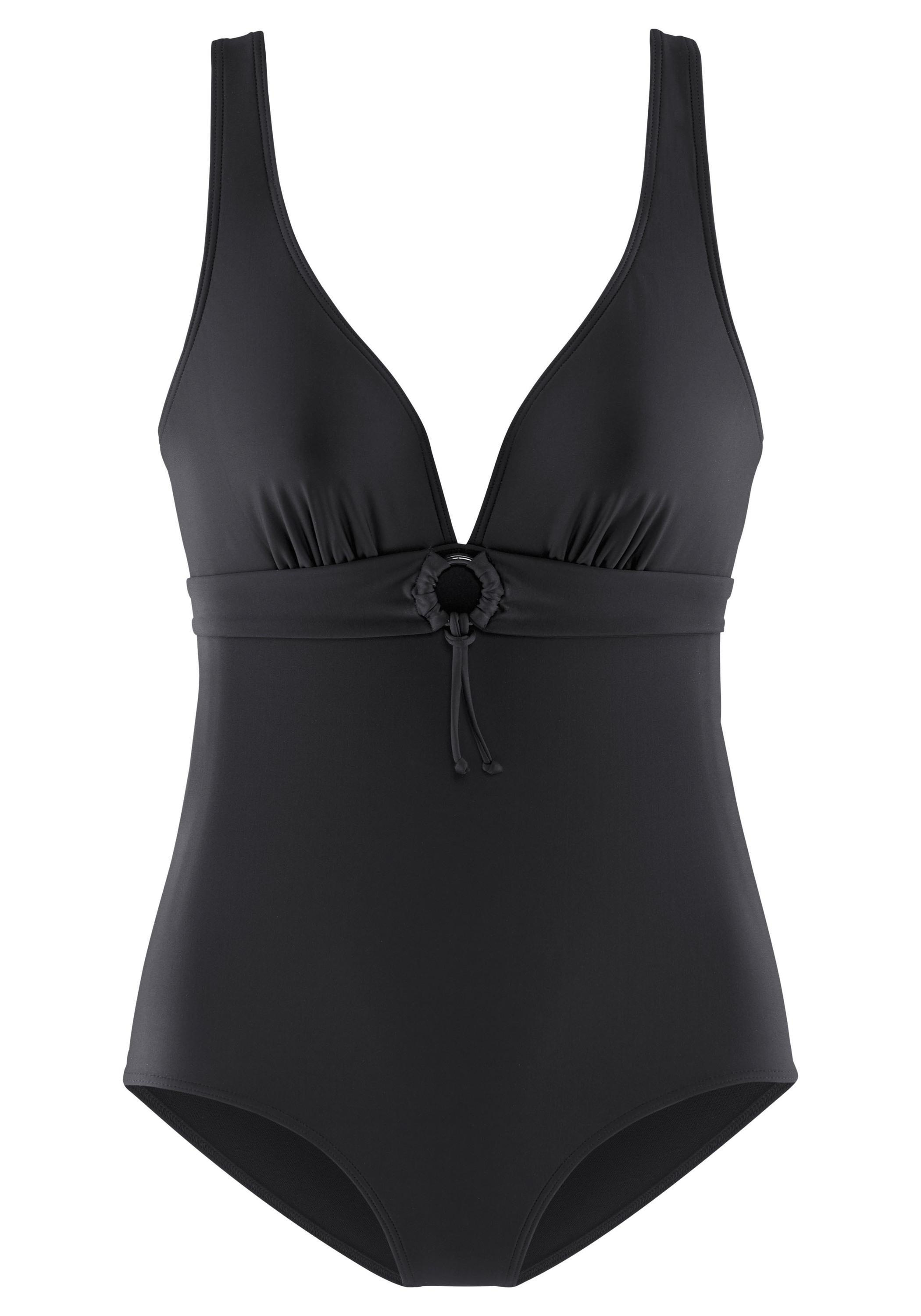 Klassischer Badeanzug von s.Oliver. Tiefer-V-Ausschnitt mit Unterbrustband und Deko-Element. Herausnehmbare Cups, Shaping-Einsatz, verstellbare Träger. Niedriger Beinausschnitt. Sehr elastisches Material.