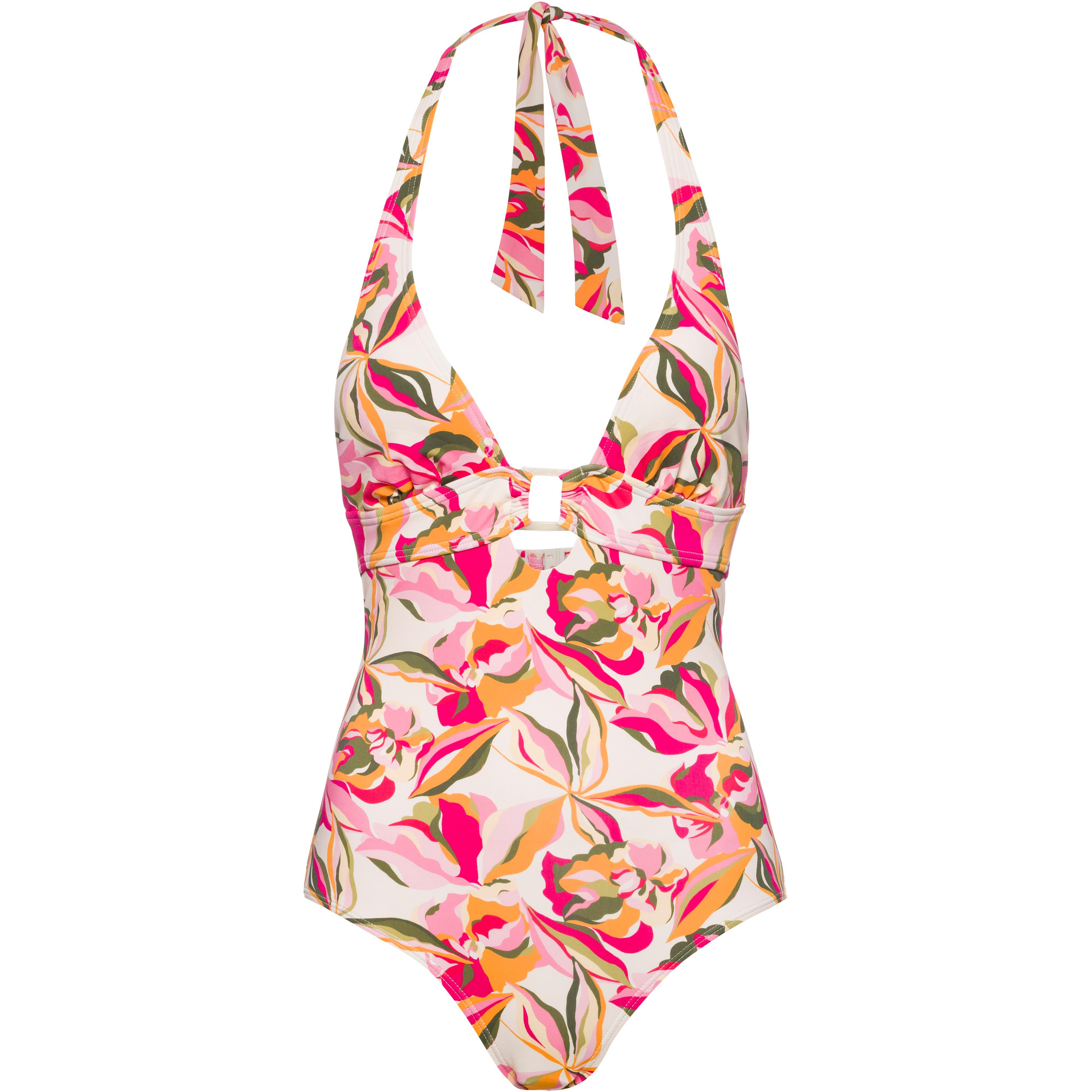 Badeanzug mit floralem Print; Neckholder zum Binden; Unterbrustband mit Ring zwischen den Cups; herausnehmbare Softpads; Click-Verschluss auf der Rückseite; Obermaterial 84% Polyamid, 16% Elastan; Futter 100% Polyester.