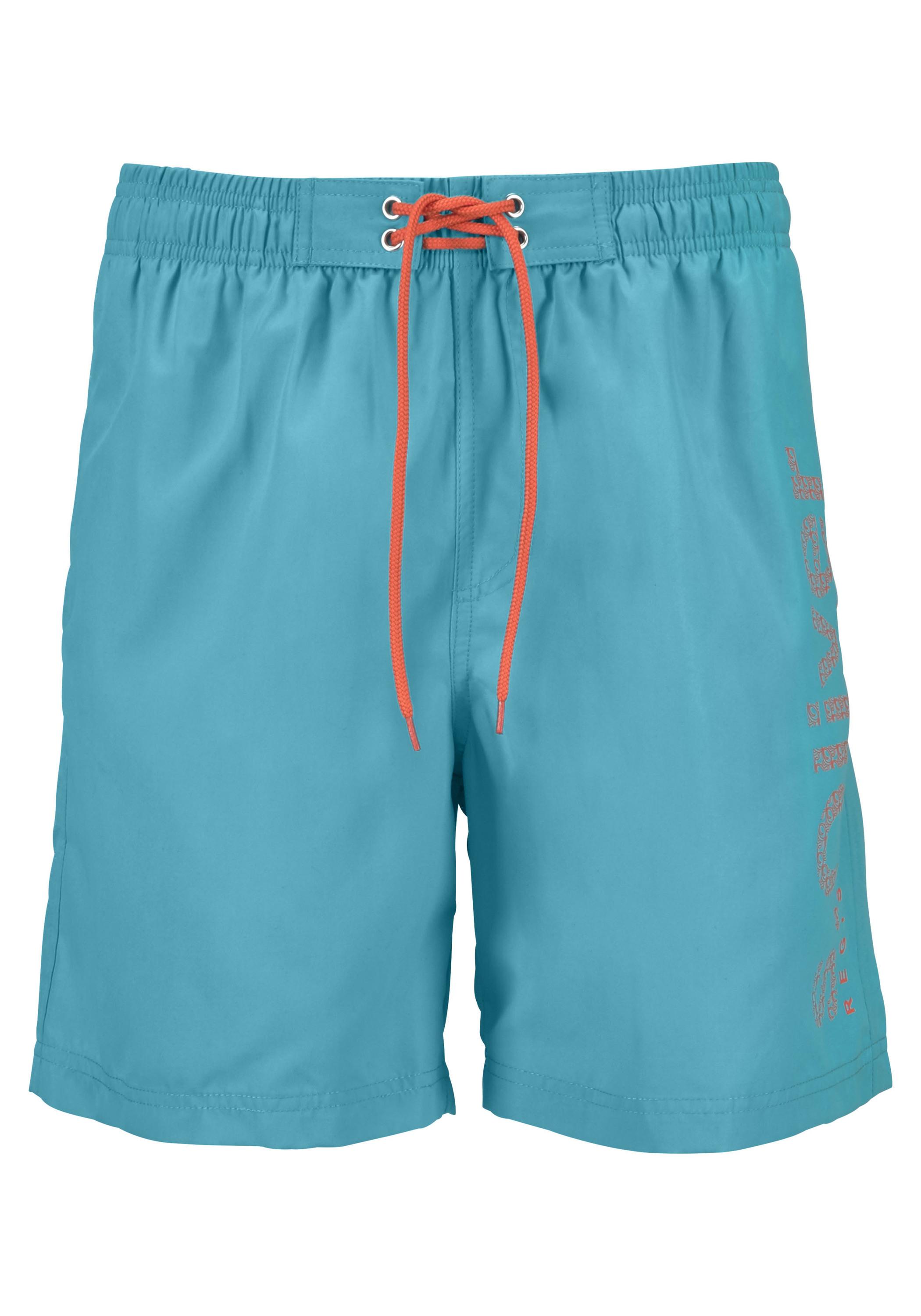 Im angesagten Look mit Logo-Schriftzug seitlich. Elastischer Bund mit kontrastfarbener Außenkordel. Seitliche Eingrifftaschen. Innenslip und kleine Innentasche. Länge in Gr. M ca. 44 cm. Softe Microfaser-Qualität.