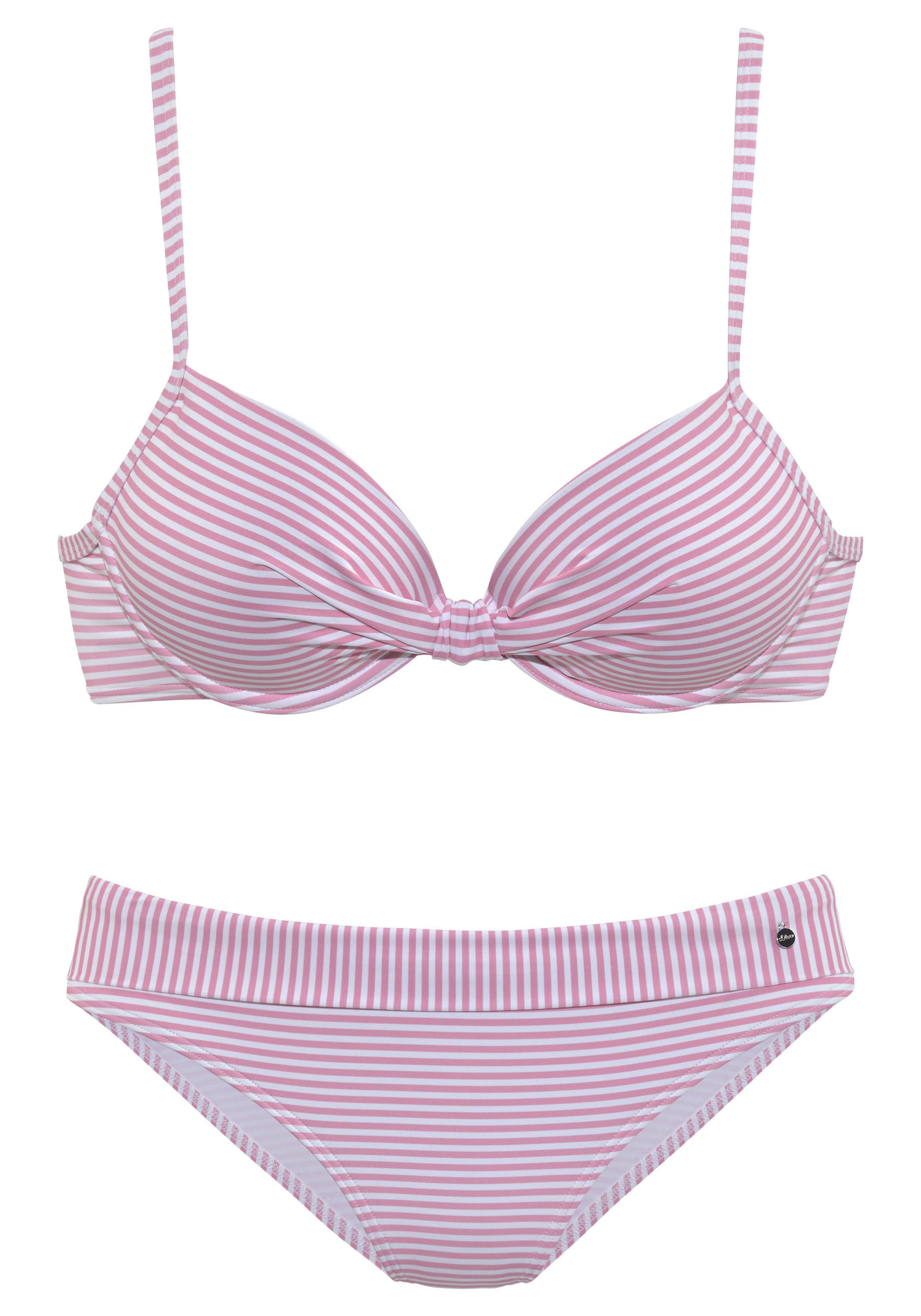 Aparter Bügel-Bikini von s.Oliver. Im Streifendesign. Wohlgeformtes Dekolleté durch wattierte Cups. Träger verstellbar. Bikini-Hose mit Umschlagbund. Perfekt für das Urlaubsoutfit. Weiches Material.
