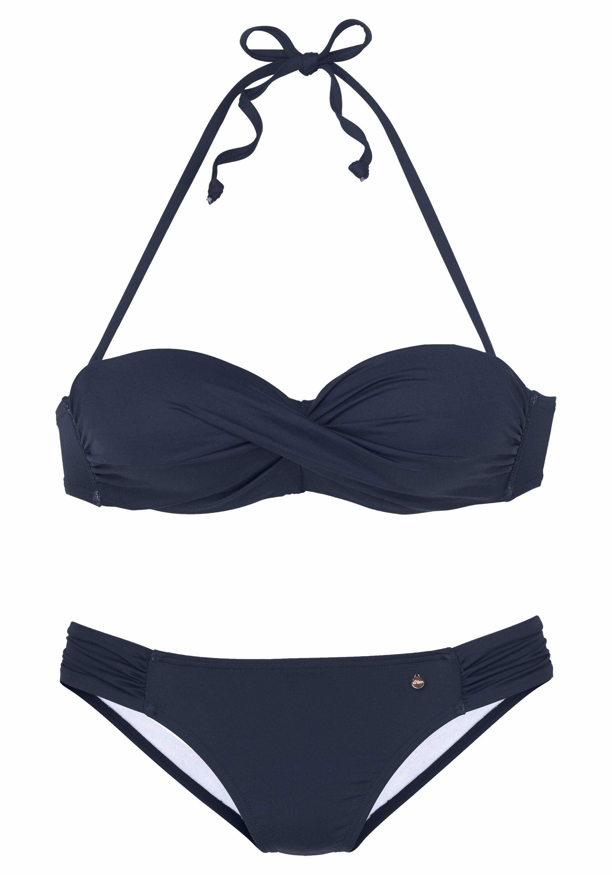Mit seitlichen Stäbchen für einen guten Halt. Mit wattierten Cups und herausnehmbaren Kissen für Cup A und B. Abnehmbare Träger, im Nacken zu binden. Top im Rücken zu schließen. Hose mit leichter Raffung seitlich. Softe Microfaser-Qualität.