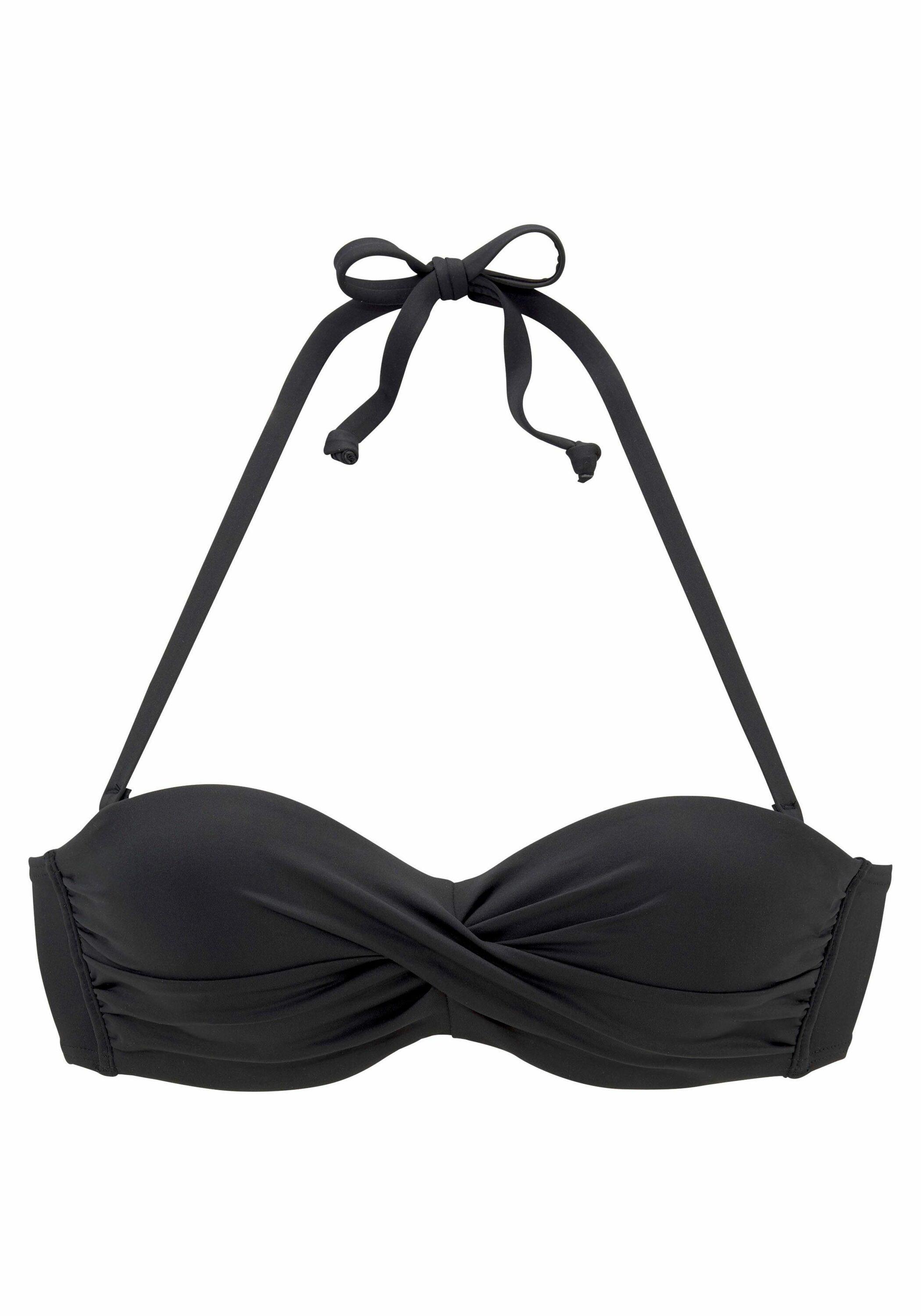 Bügel-Bandeau-Top von S.Oliver Beachwear. Mit wattierten Cups, in Cup A bis C mit herausnehmbaren Kissen. Seitliche Stäbchen. Abnehmbare Träger. Obermaterial: 84% Polyamid, 16% Elasthan. Futter: 100% Polyamid. Wattierung: 100% Polyester