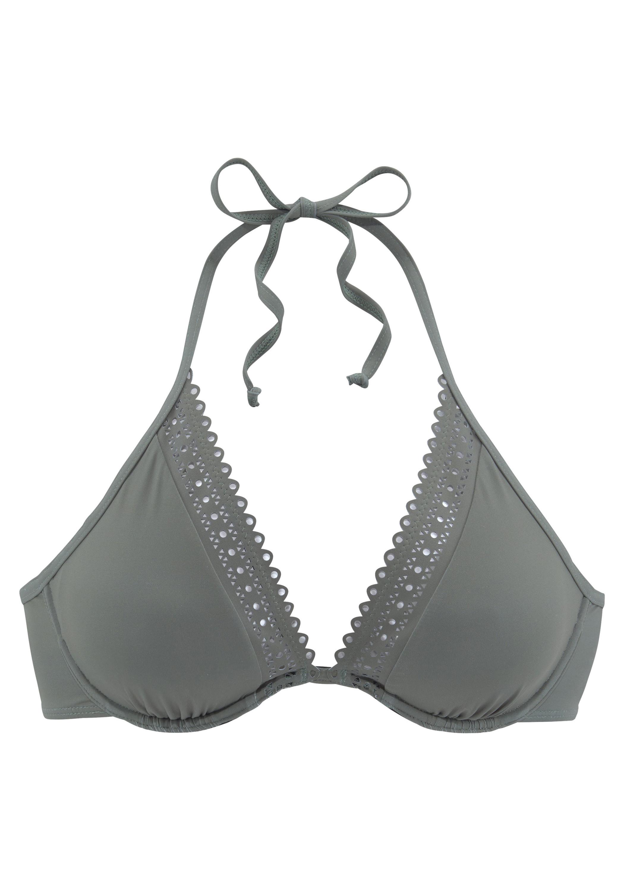 Bügel-Top von s.Oliver mit dekorativem Lochmuster als Abschlusskante. Neckholder zum Binden. Herausnehmbare Cups. Weiche Microfaserqualität.