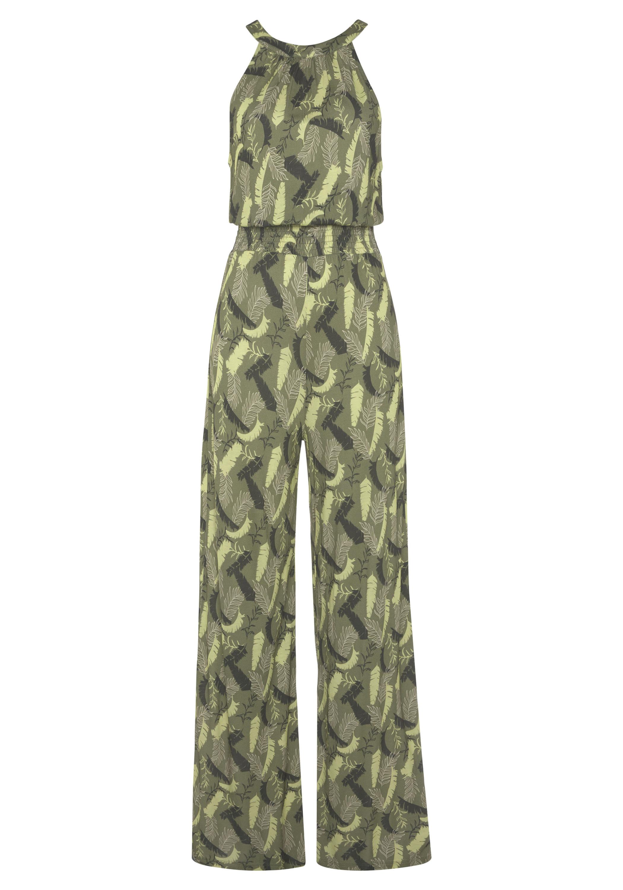 Sommerlicher Jumpsuit von s.Oliver mit individuellem Alloverprint – jedes Teil ein Unikat. Amerikanischer Ausschnitt, Schlitz mit Bindeband im Nacken. Breiter Smokeinsatz in der Taille. Bequem weite Beinform. Weich fließende Viskose.