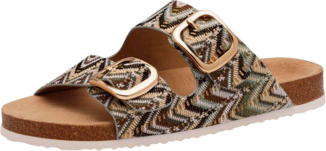 Speziell an warmen Tagen ist diese Pantolette das absolute Must-Have im Sommer. Mit den großen Statement-Schnallen, die individuell an die Fußform anpassbar ist, wird das wertige Textil mit seinem dynamischen Muster toll in Szene gesetzt und kann somit zu einer kurzen Shorts als auch zu einem Kleid oder einer Jeans getragen werden. Die leicht gepolsterte Decksohle aus Textil ist dabei angenehm am Fuß zu tragen, sodass der Schuh von S.OLIVER keineswegs in deinem Schuhschrank fehlen darf.