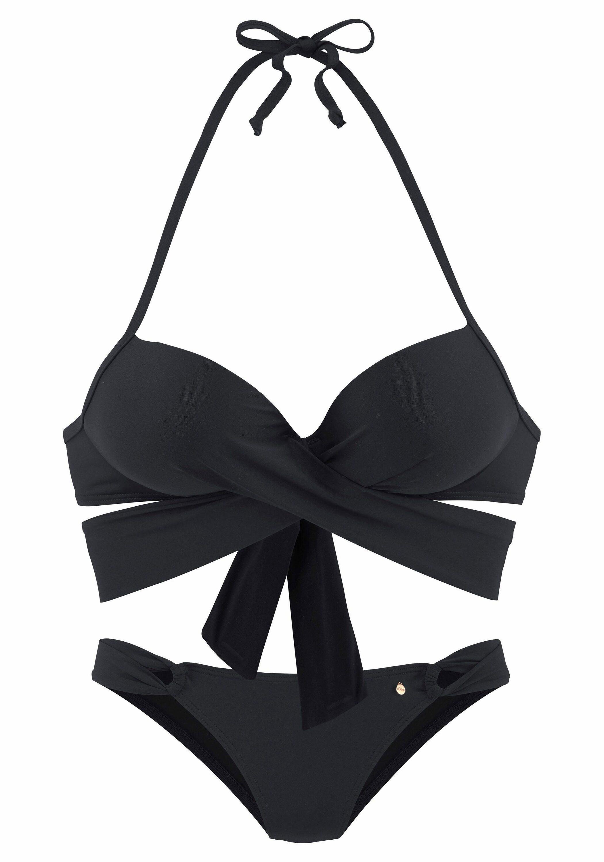 Mit wattierten Cups und eingearbeiteter Verstärkung für ein atemberaubendes Dekolleté. Trendige Wickeloptik durch breite Bänder, die sich im Rücken binden lassen. Top zusätzlich im Rücken zu schließen. Softe Microfaser-Qualität.