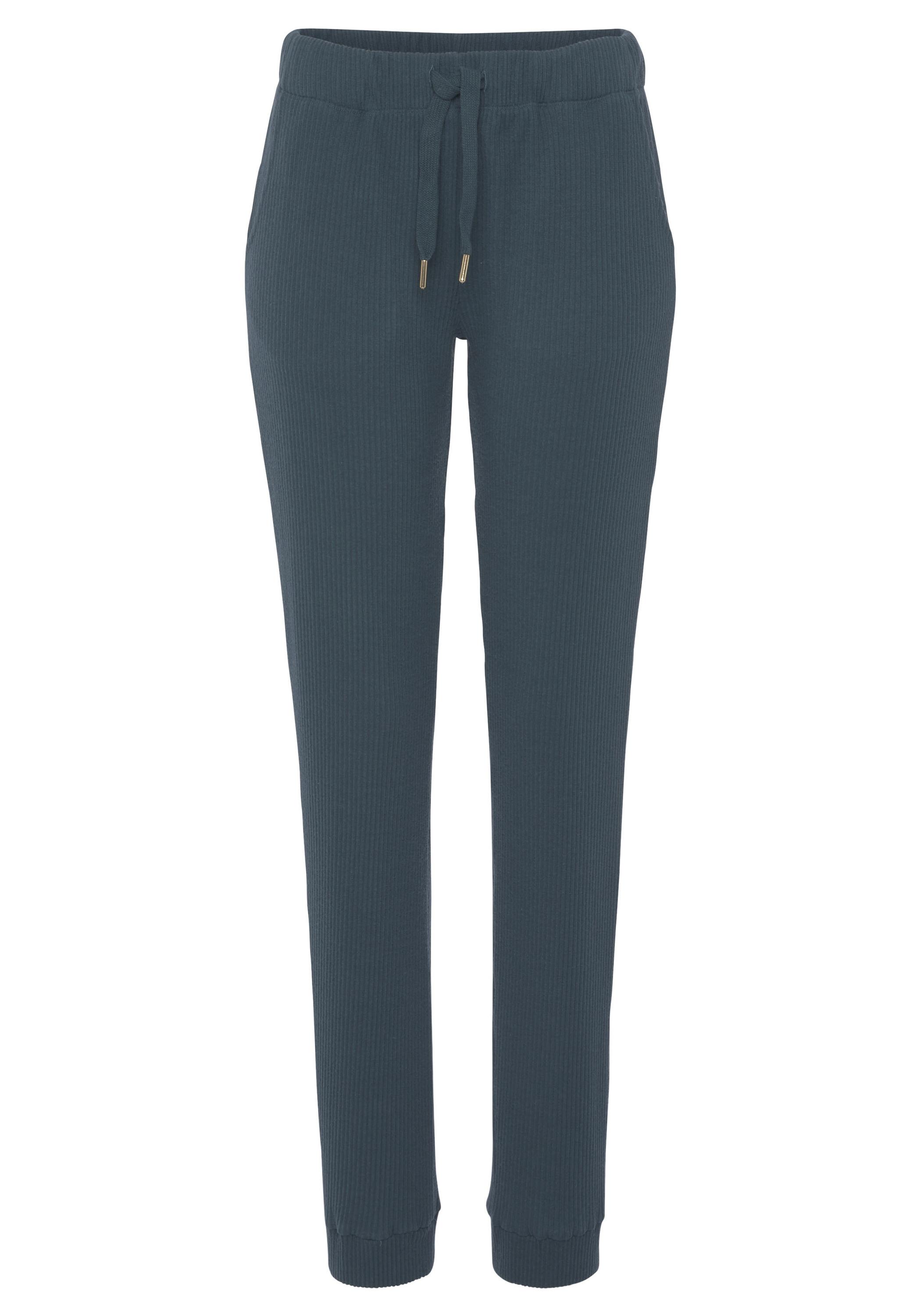 Sweatpants von s.Oliver. Dehnbund mit Tunnelzug. Seitliche Eingrifftaschen. Schmale Passform. Weiche Baumwollware in Rippstruktur.