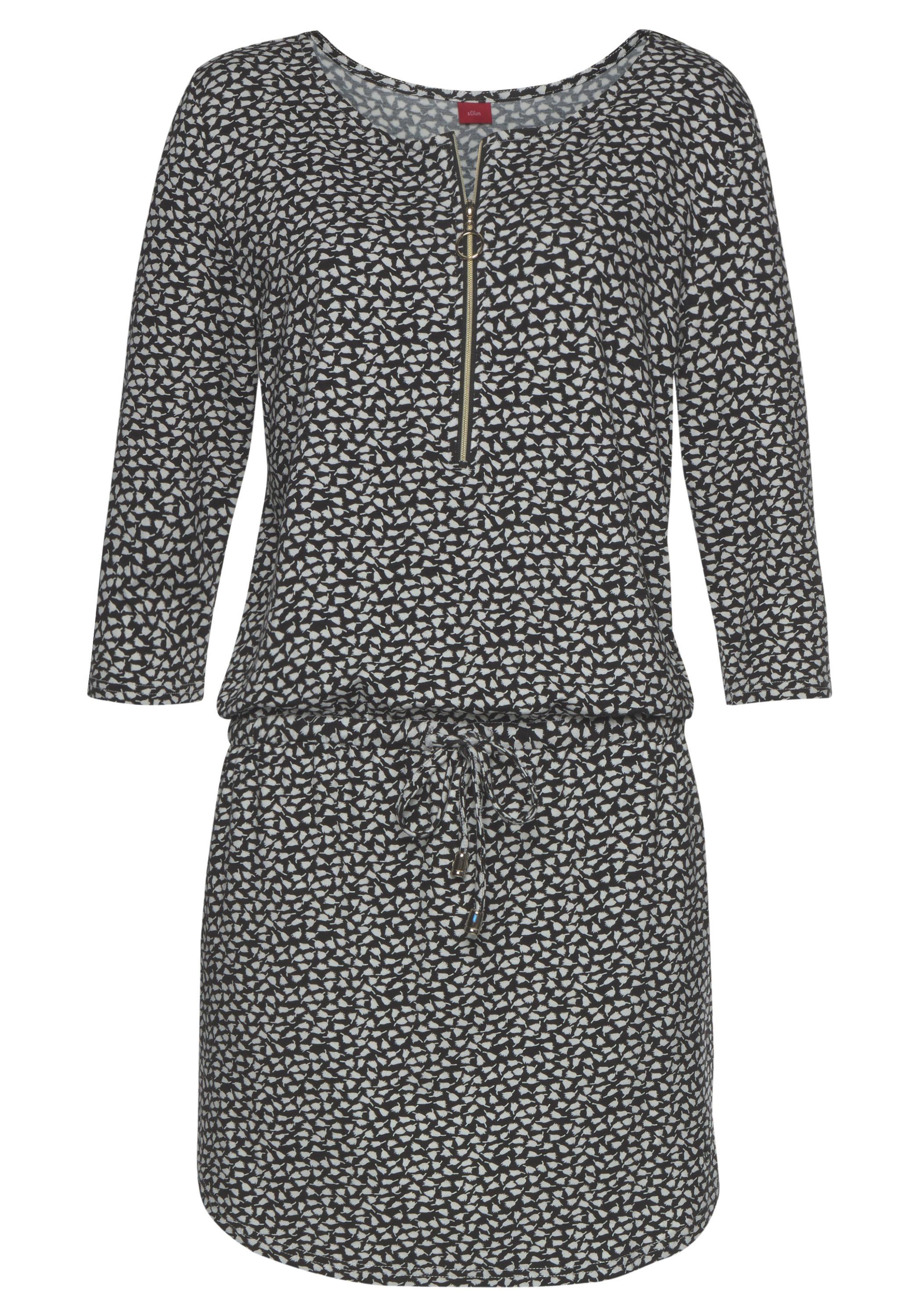 Mit goldfarbenem Reißverschluss am Ausschnitt. Seitliche Eingrifftaschen. In der Taille mit Gummizug und Band mit goldfarbenen Accessoires. Gerundeter Saum und Logostickerei. Länge ca. 88 cm. Elastische Qualität aus 95% Viskose, 5% Elasthan.