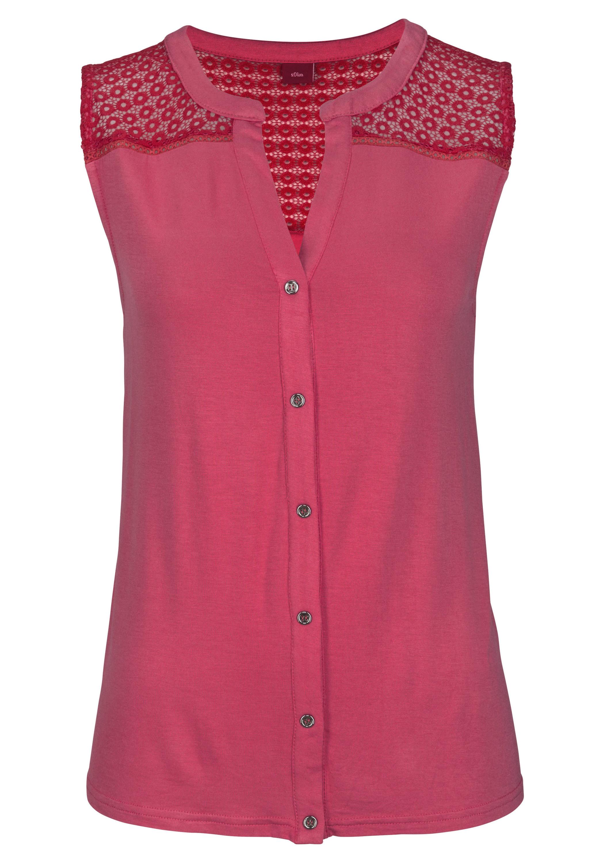 Mit schöner Zierknopfleiste vorn und Spitzeneinsatz an den Schultern und am oberen Rücken. Kleine Logostickerei am Saum. Länge ca. 60 cm. Aus 95% Viskose, 5% Elasthan. Spitze: 95% Polyamid, 5% Elasthan.