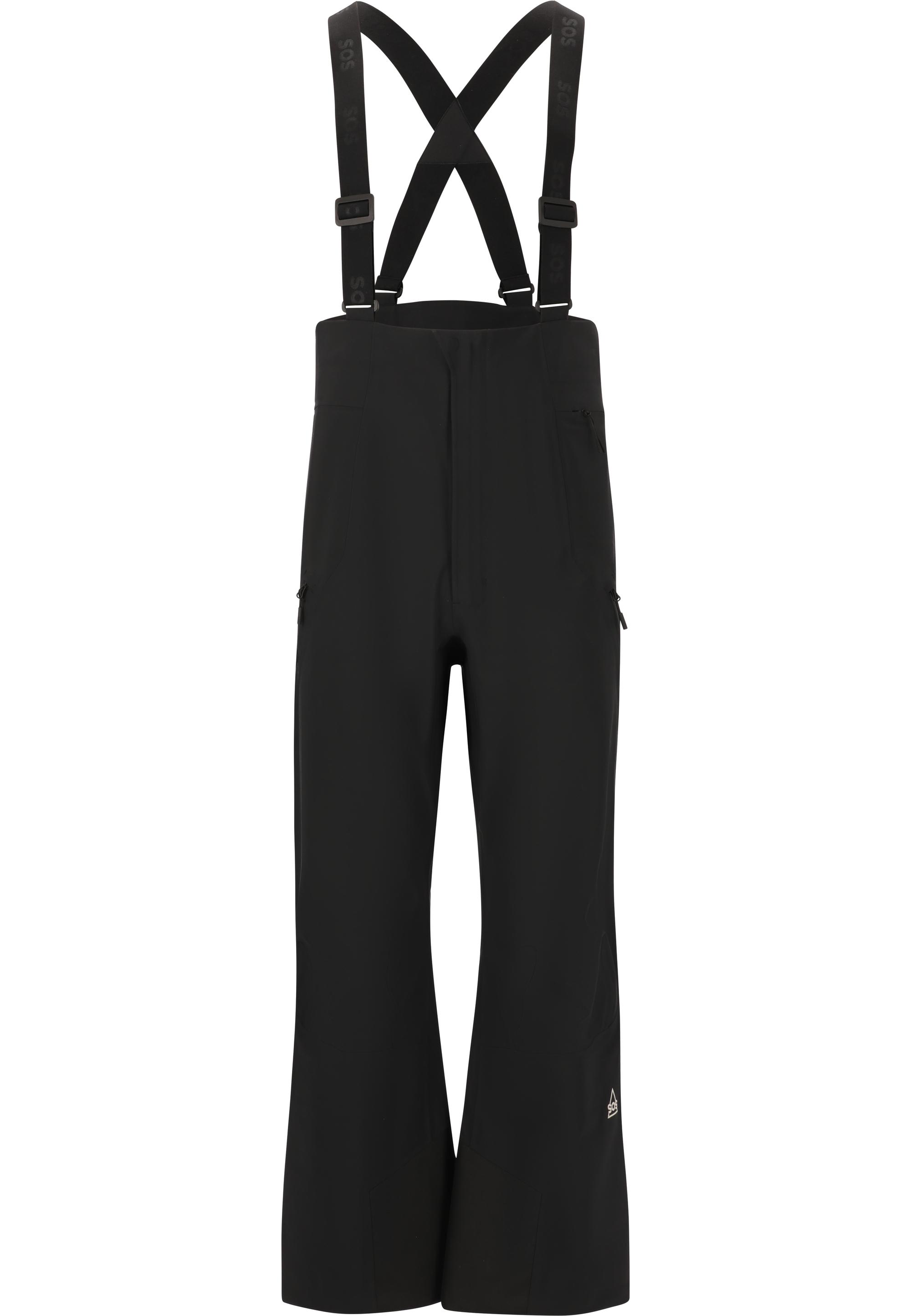 Mit ihrem funktionalen und sportlichen Design bringt die "Hoverla" Ski-Latzhose für Damen deine Wintererlebnisse aufs nächste Level. Sie ist mit 15.000 mm Wassersäule hochgradig wasserdicht und hält mithilfe von getapten Nähten und einer atmungsaktiven und wasserabweisenden Bionic Finish-Membran Nässe zuverlässig fern. Zusätzlichen Schutz vor den Elementen bietet die Hose mithilfe von Schneefängen, und verstärkte Elemente machen sie noch langlebiger und strapazierfähiger. In den praktischen Seitentaschen kannst du wichtige Gegenstände zuverlässig verstauen. Genieße deine Winterabenteuer in vollen Zügen und mit optimalem Schutz vor der Witterung mit "Hoverla" von SOS!