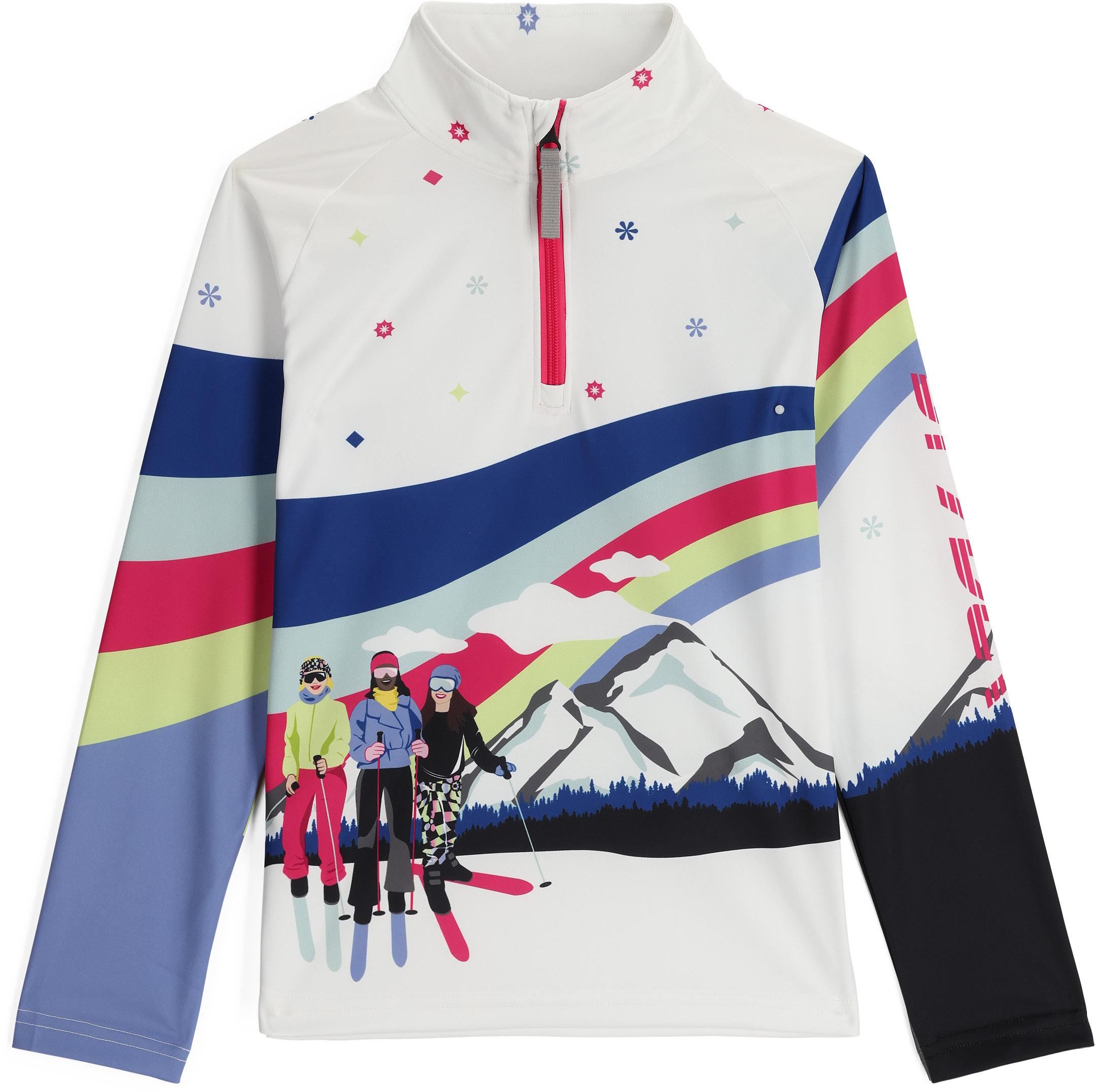 Wärmendes Langarmshirt aus elastischem Material mit buntem Ski-Print; mittelhoher Stehkragen; verkürzter YKK®-Reißverschluss mit Kinnschutz; großes Logodetail; normale Passform; Material 100% Polyester.