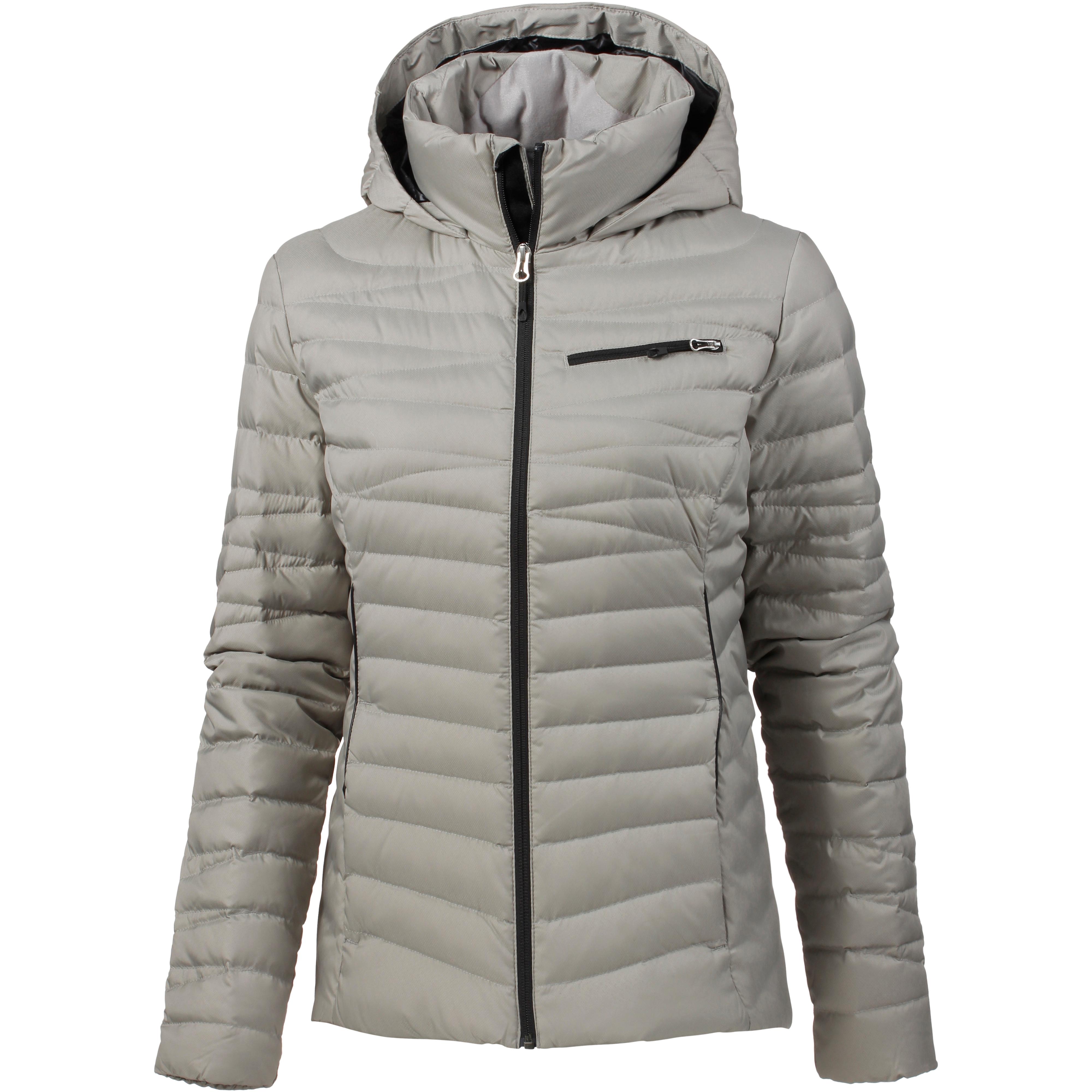 Steppjacke mit fester Kapuze; fleecegefütterter Stehkragen mit Kinnschutz; unterlegter Frontreißverschluss; 1 Reißverschlusstasche auf der Brust; 2 verdeckte Reißverschlusstaschen; taillierter Schnitt; enthält nichttextile Teile tierischen Ursprungs; Material 100% Polyester.