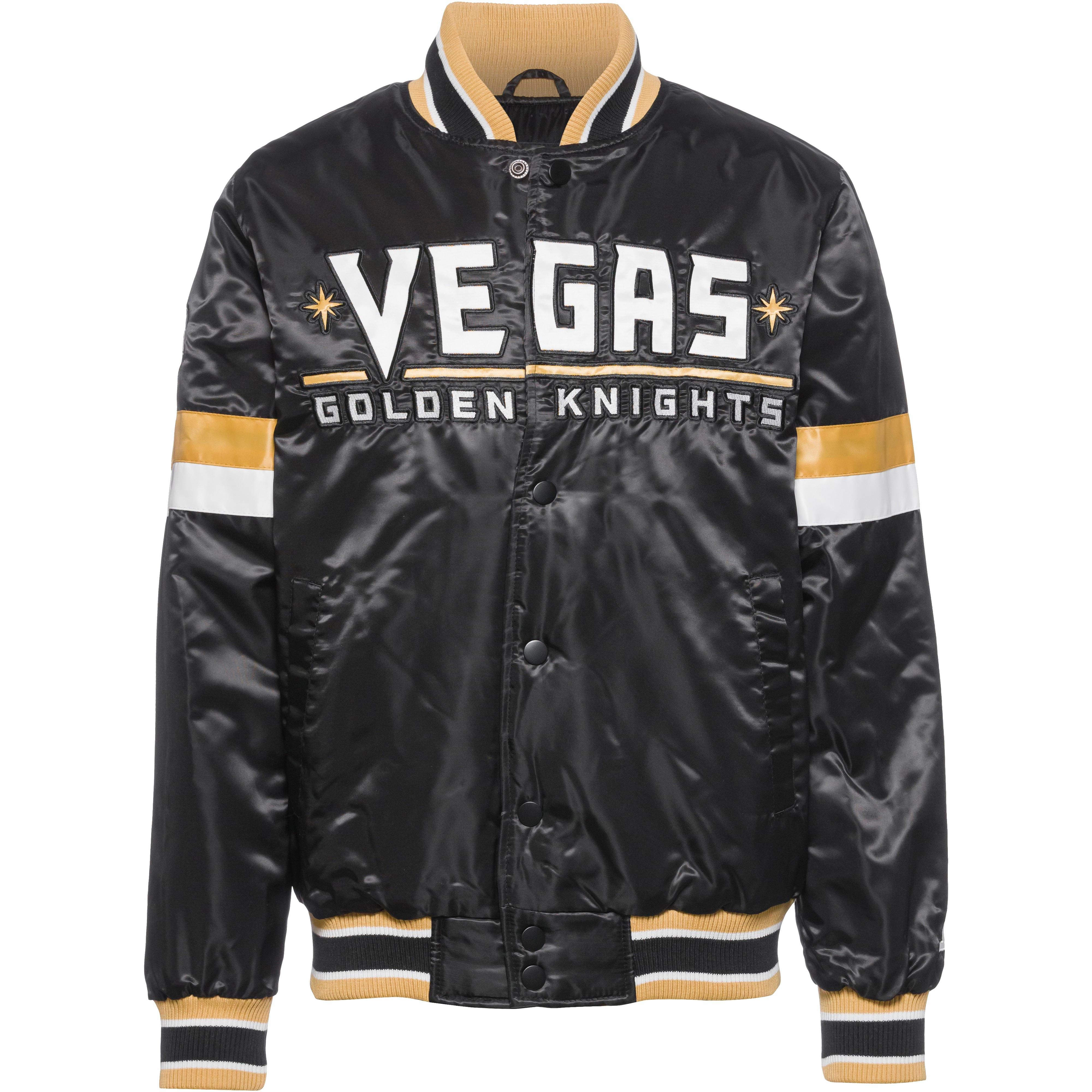 Wärmende Polyjacke im Bomberjacken Look, mit diversen Vereinsdetails der Vegas Golden Knights; Stehkragen sowie Arm-und Saumabschluss mit Rippbündchen; durchgehende Druckknopfleiste auf der Front; 2 seitliche Eingriffstaschen; 2 Innentaschen; Obermaterial 100% Polyester, Futter 100% Polyester, Wattierung 100% Polyester.