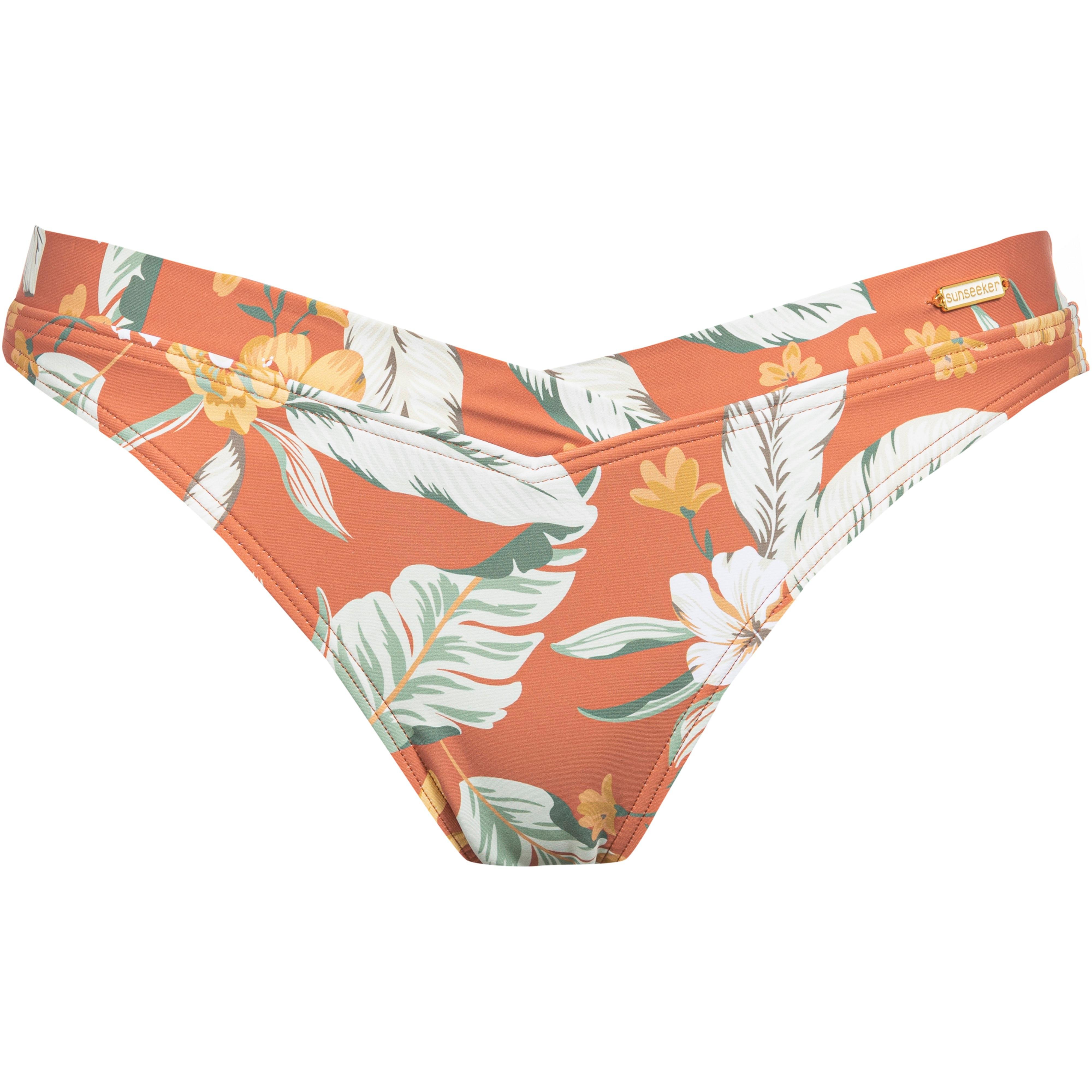 Gefütterte Bikinihose mit Nature-Print; Slip-Design; eleganter Bund mit leichter V-Form; metallischer Label-Aufnäher; elastisch; Material I 84% Polyamid, 16% Elastan; Material II 92% Polyester, 8% Elastan.