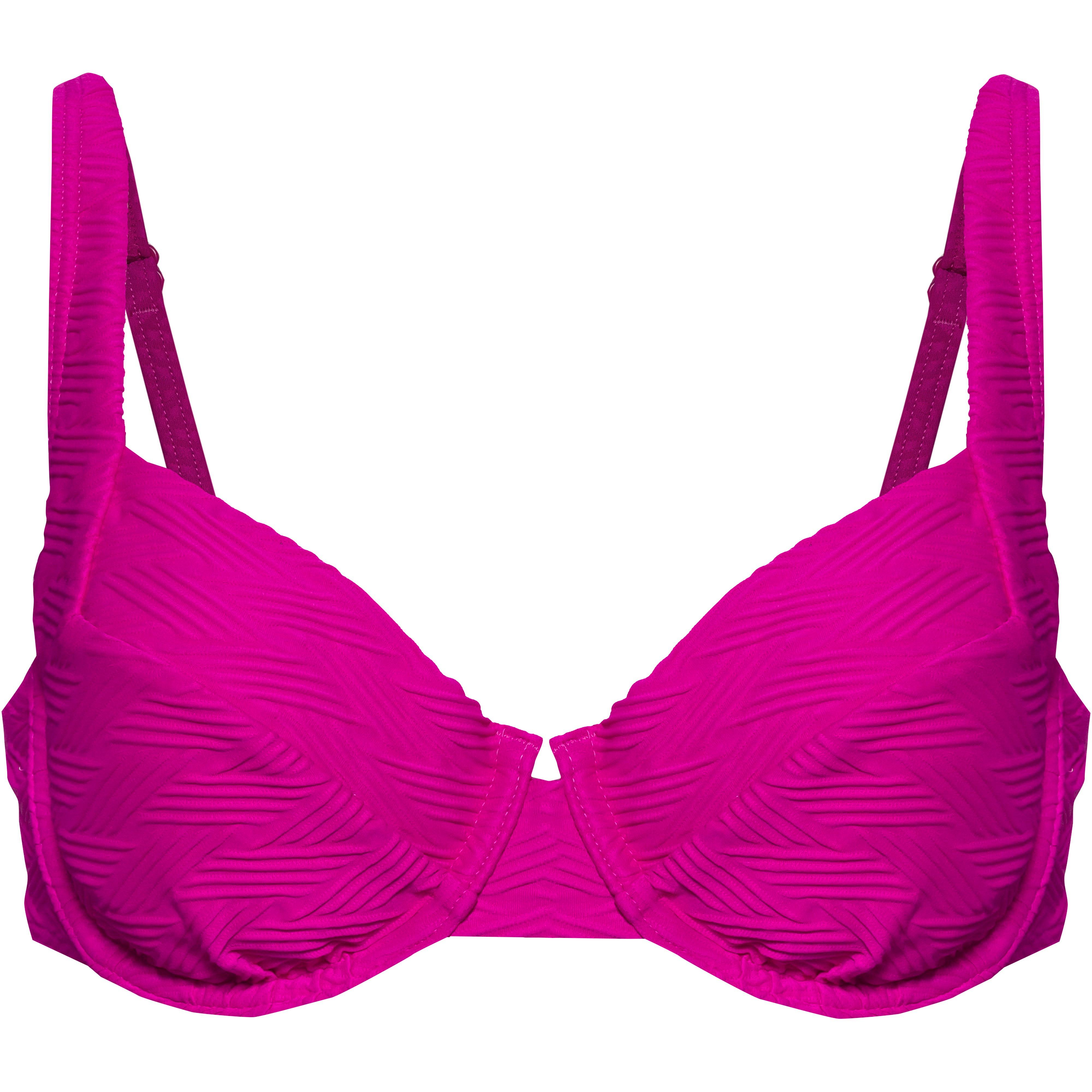 Bikini-Oberteil aus elastischem Material mit strukturiertem Muster; schmale, verstellbare Träger; gefütterte Cups mit stützenden Bügeln; Clip-Verschluss am Rücken; Obermaterial 82% Polyamid, 18% Elastan; Futter 92% Polyester, 8% Elastan.