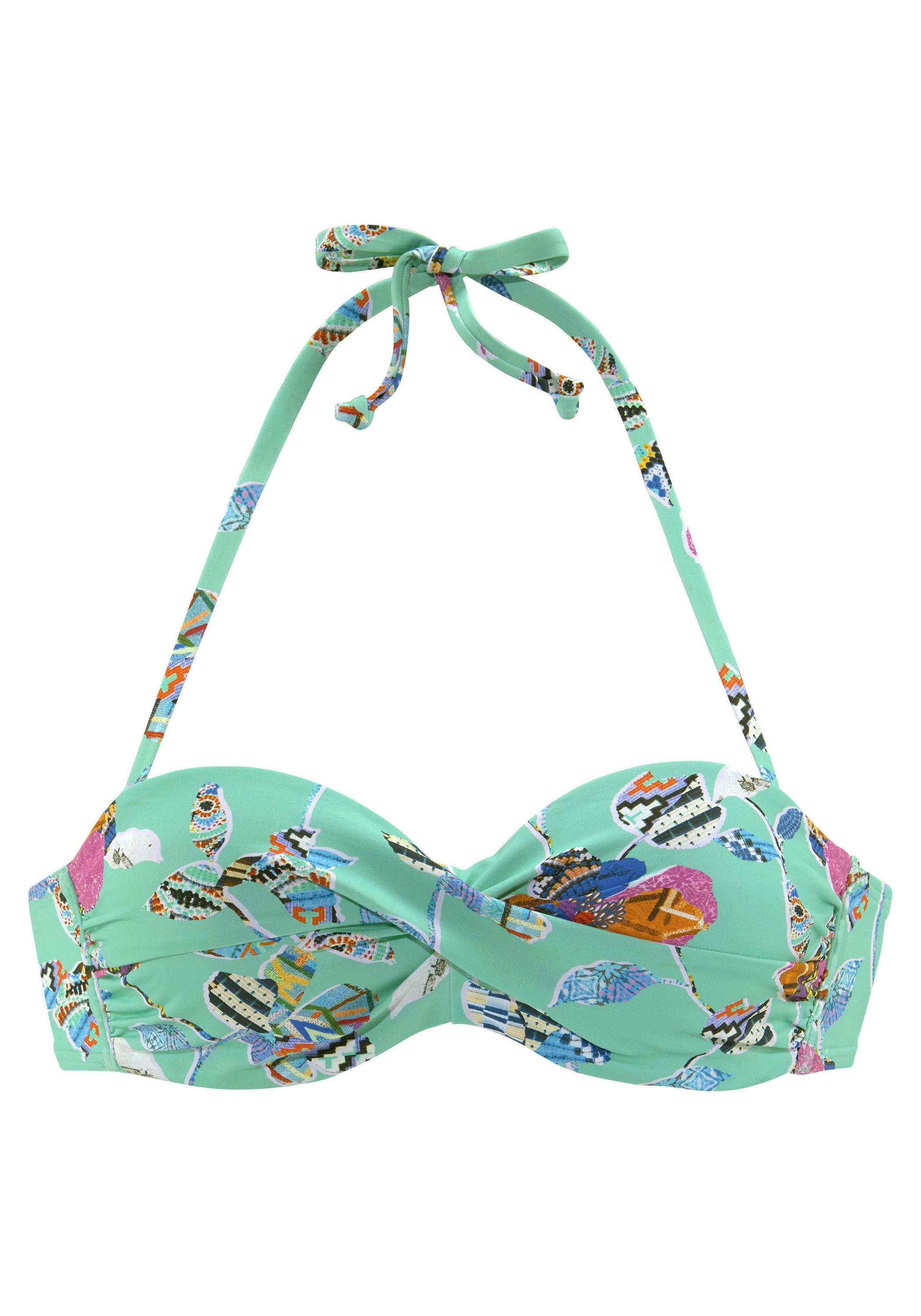Bügel-Bandeau-Bikinitop von Sunseeker. Sommerlicher Alloverprint. Abnehmbarer Neckholder zum Binden. Breite Seitenstege mit Stäbchen und Verschluss im Rücken. Herausnehmbare Kissen für Cup A und B. Aus der Mix-Kini-Serie. Weiche Microfaser.