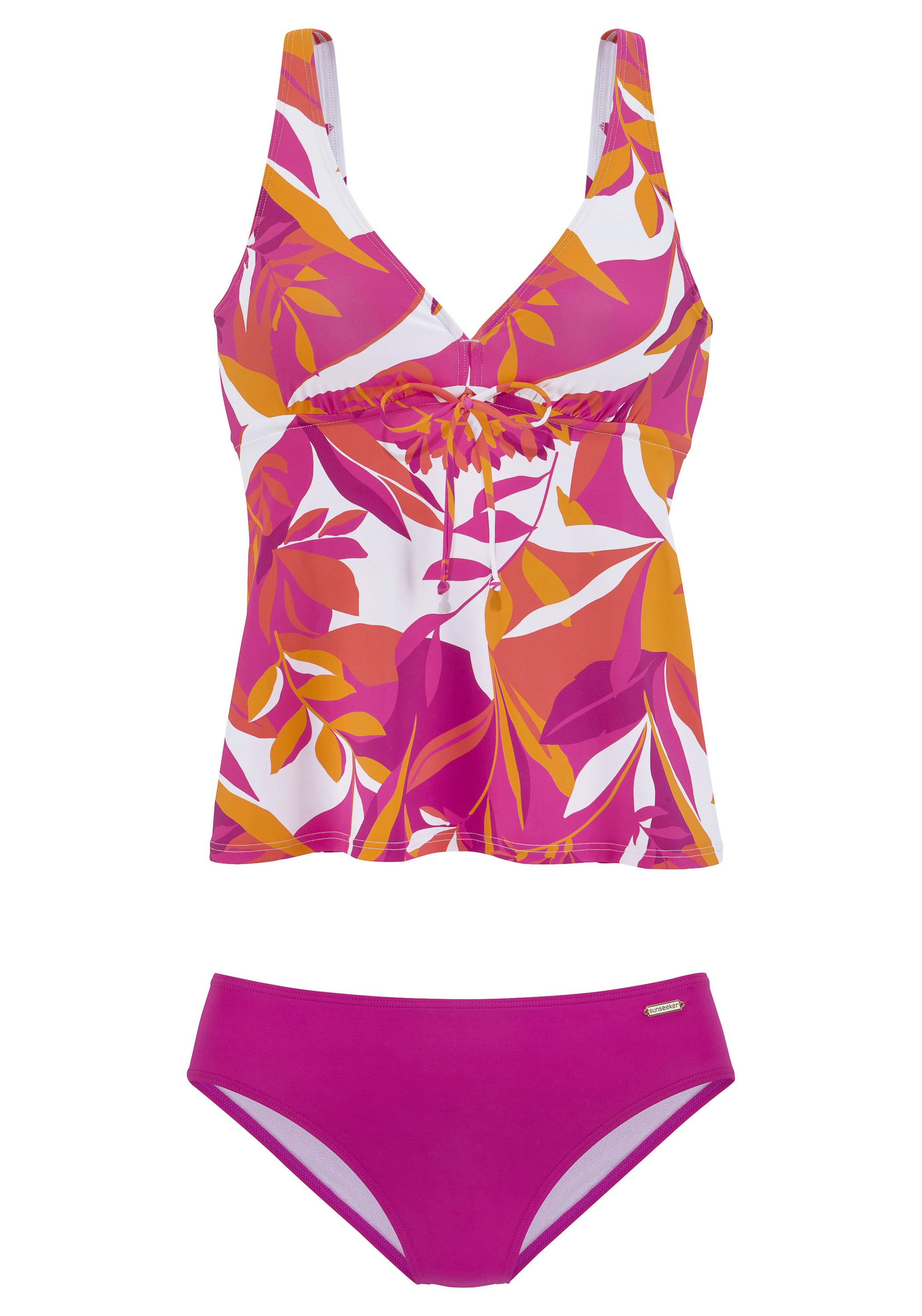 Trendiger Bügel-Tankini von Sunseeker. Oberteil mit abstraktem Blätterprint. Unterhalb der Brust regulierbar, Träger verstellbar. Unifarbene Hose, etwas höher geschnitten. Softe Microfaser.