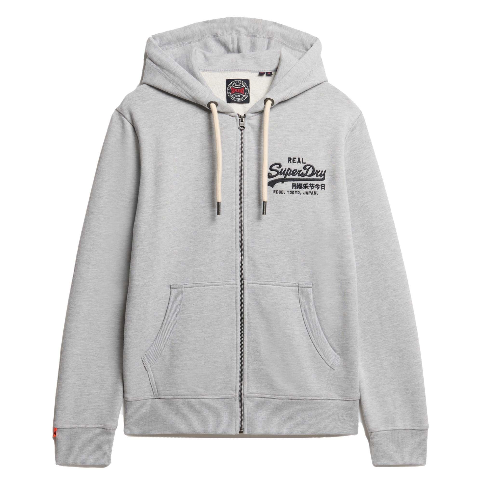 Einfarbige Sweatjacke für Herren von der Marke Superdry. Mit Logo Print auf der Vorderseite und kleinen markentypischen Logo Details. Perfekt für den Alltag.