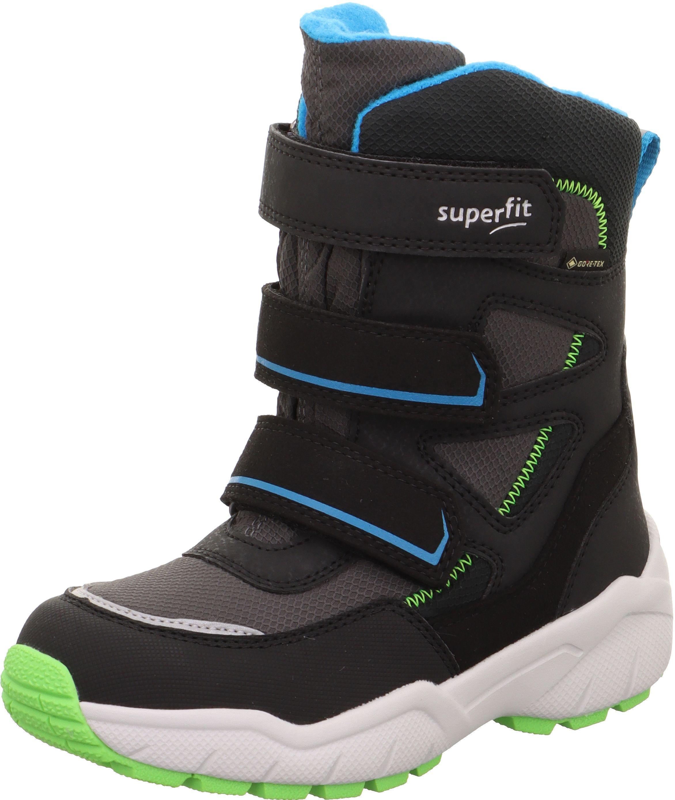 Robuster Stiefel von Superfit im Mix aus strapazierfähigem Textil und robusten Synthetik-Overlays. Die praktische Membran aus GORE-TEX® verspricht einen wasserundurchlässigen und atmungsaktiven Tragekomfort. Dank der Drei Klettriemen lässt sich der Schuh optimal an den Fuß anpassen und bietet hervorragenden Halt.