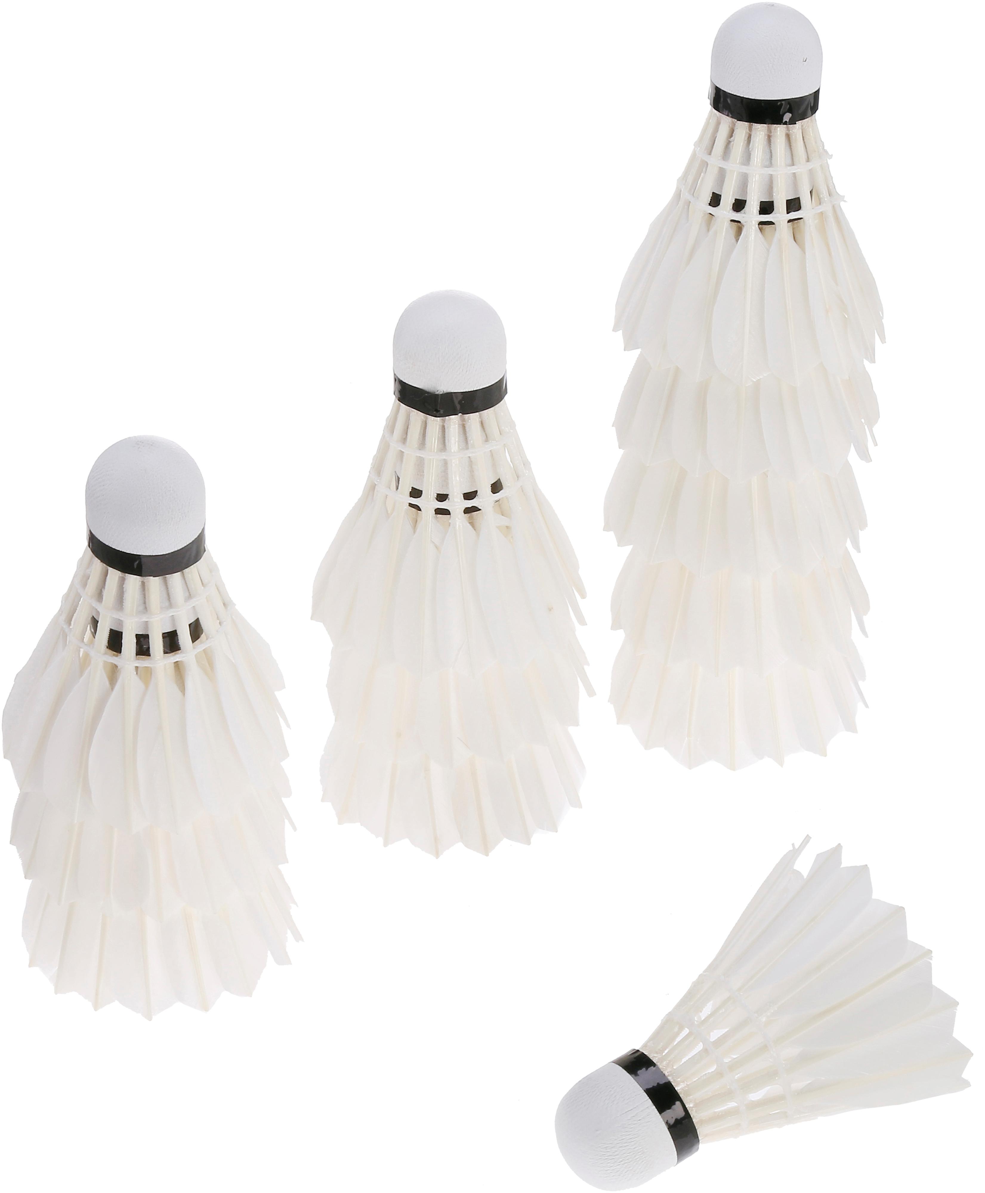 12er-Dose klassischer Badmintonbälle mit Naturfedern und Korkfuß. Geschwindigkeitsklasse: langsam.