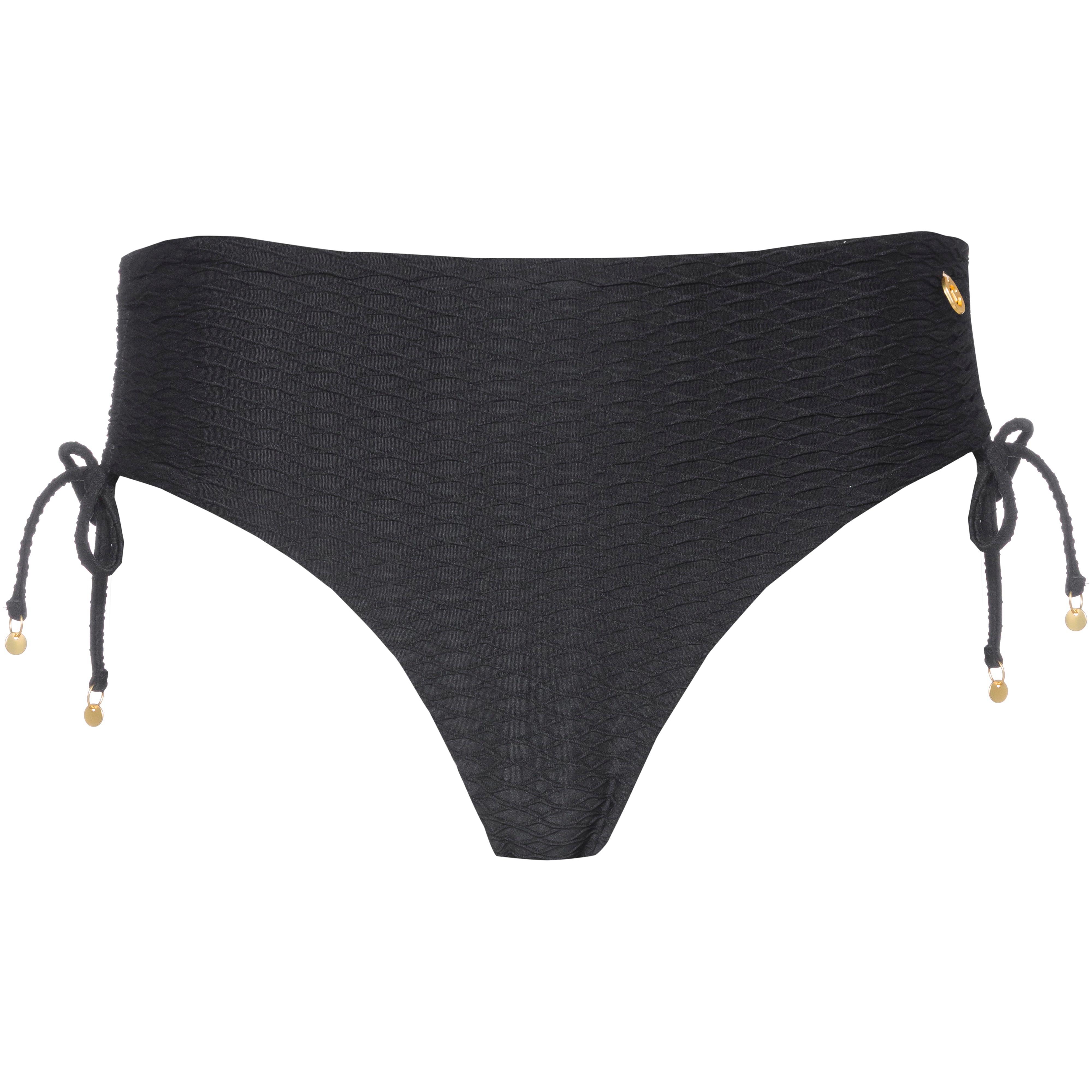 Bikinislip aus strukturiertem Gewebe; seitliche Raffung mit Schnürung; goldene Details runden den Look ab und machen den Slip zum echten Hingucker; Material 77% Polyamid (recycelt), 23% Elastan.